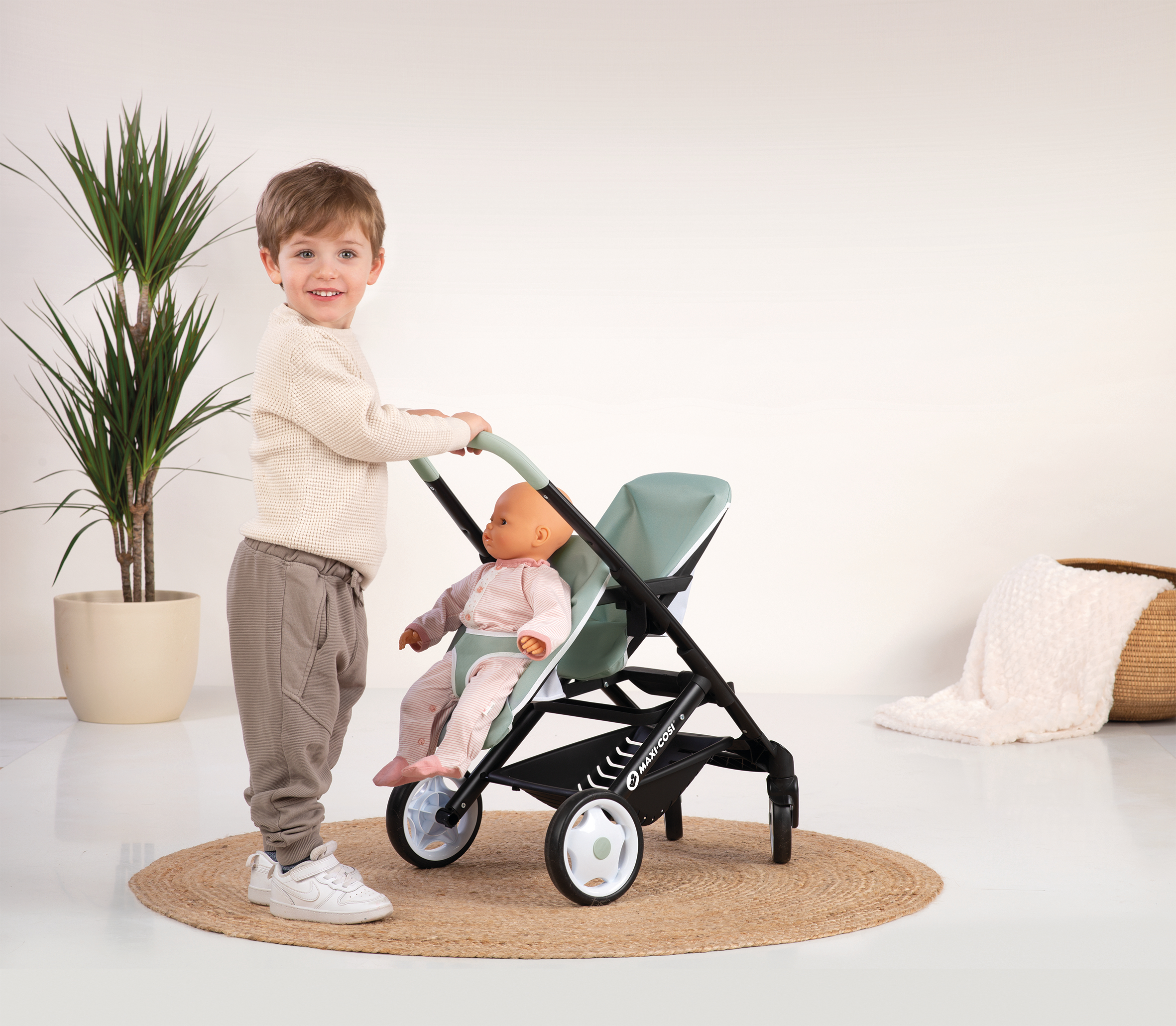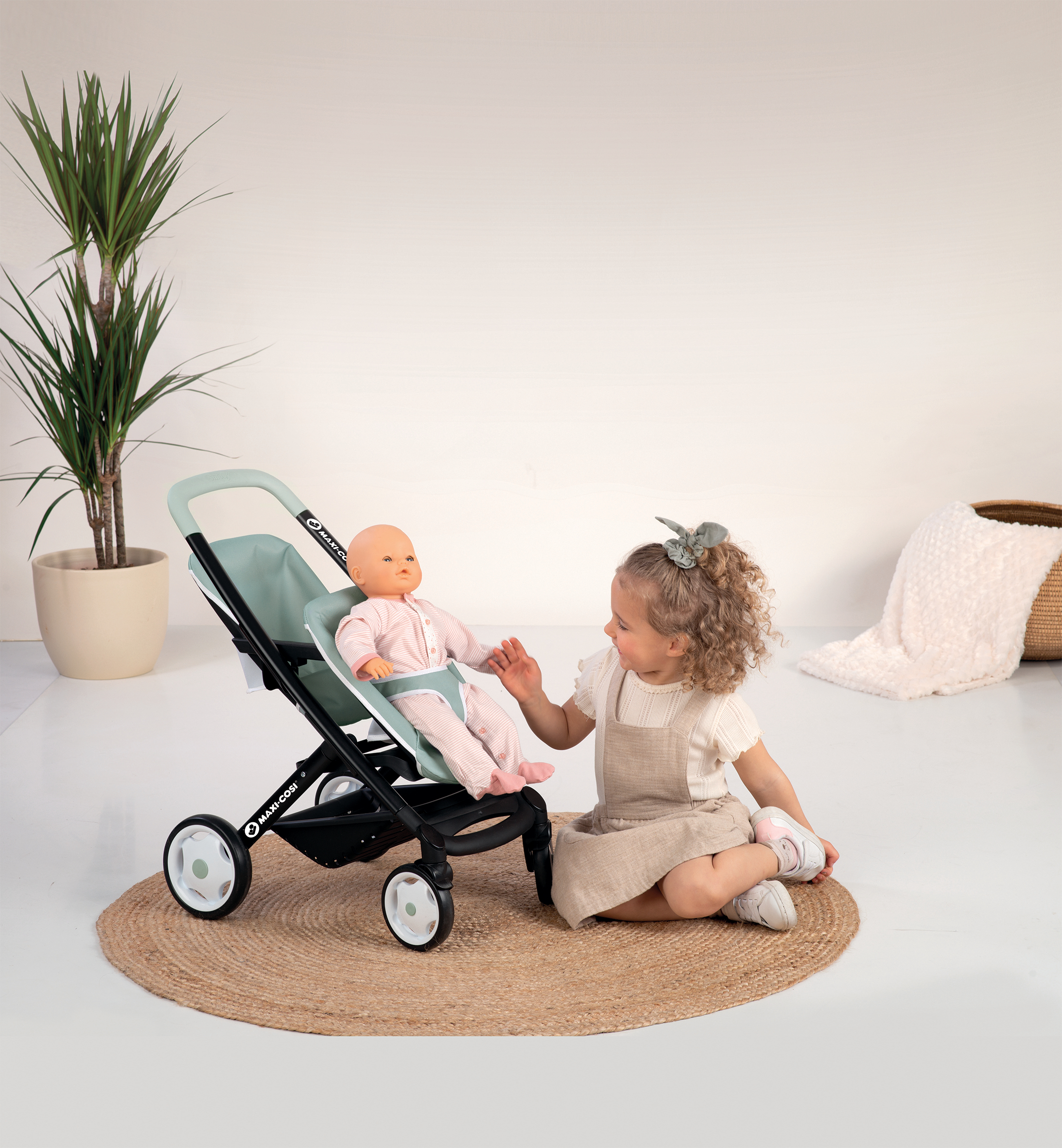 Poussette jumeaux Maxi-Cosi pour 2 poupons de 42cm maximum. - Poignée ergonomique et facilement préhensible - Sièges avec housse en tissu - 2 positions pour les sièges - Roues avant caoutchoutées silencieuses & multidirectionnelles. - Panier de rangement - Ceinture de sécurité sur le siège avant. - Hauteur de poignée : 64 cm. Pour nettoyer le tissu, utiliser uniquement une éponge très légèrement humidifiée d'eau. Poupons non inclus. A partir de 3 ans. Fabrication espagnole.