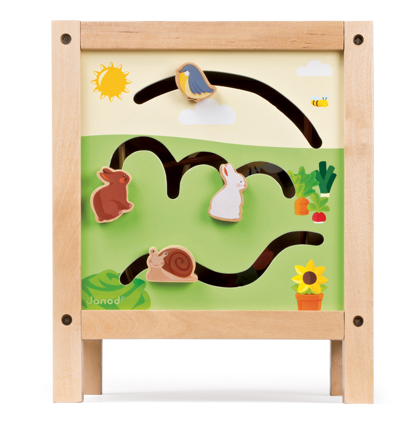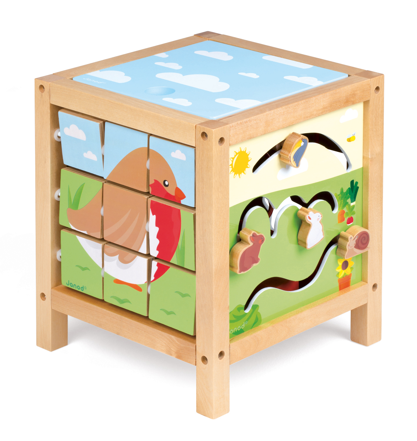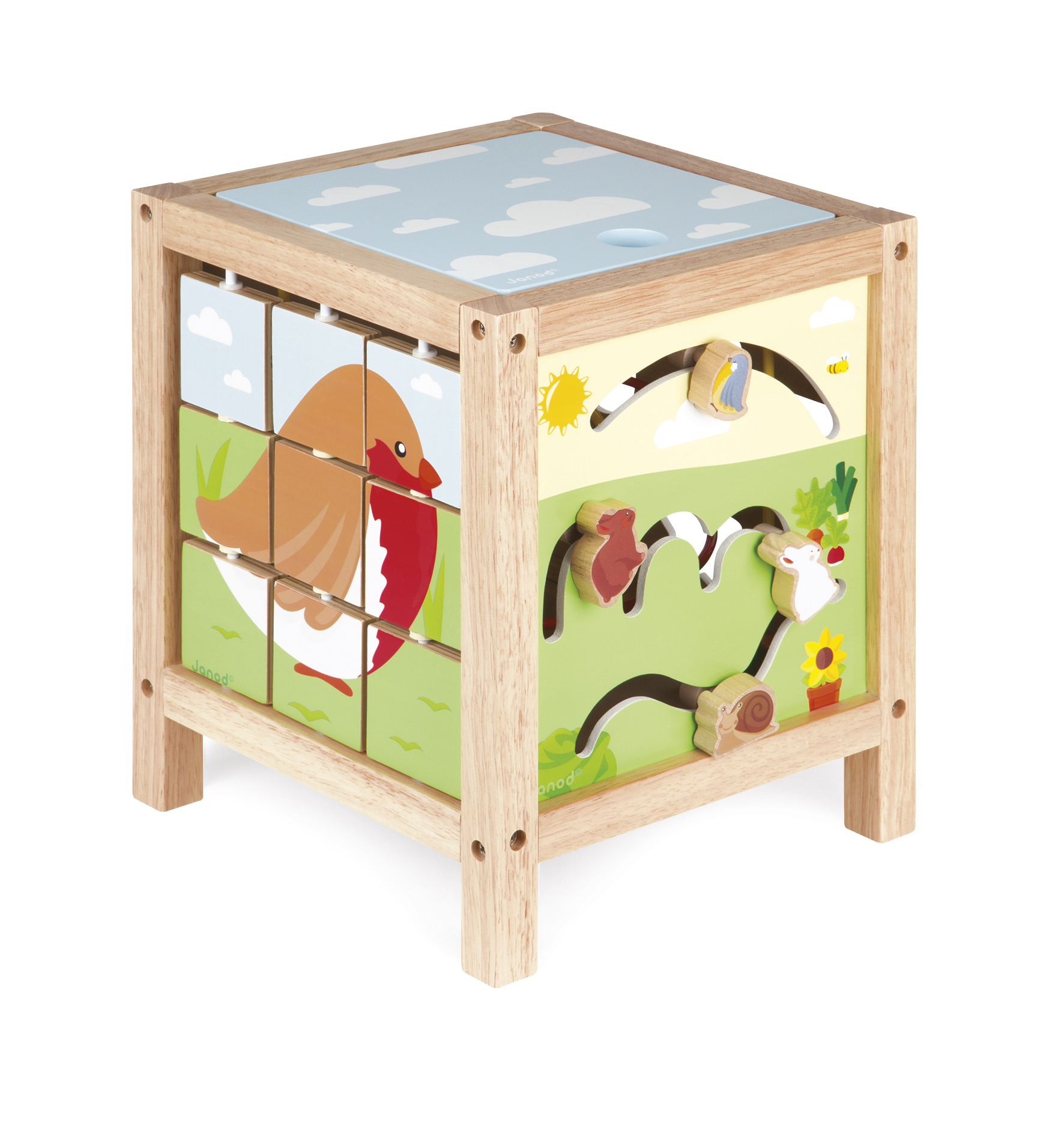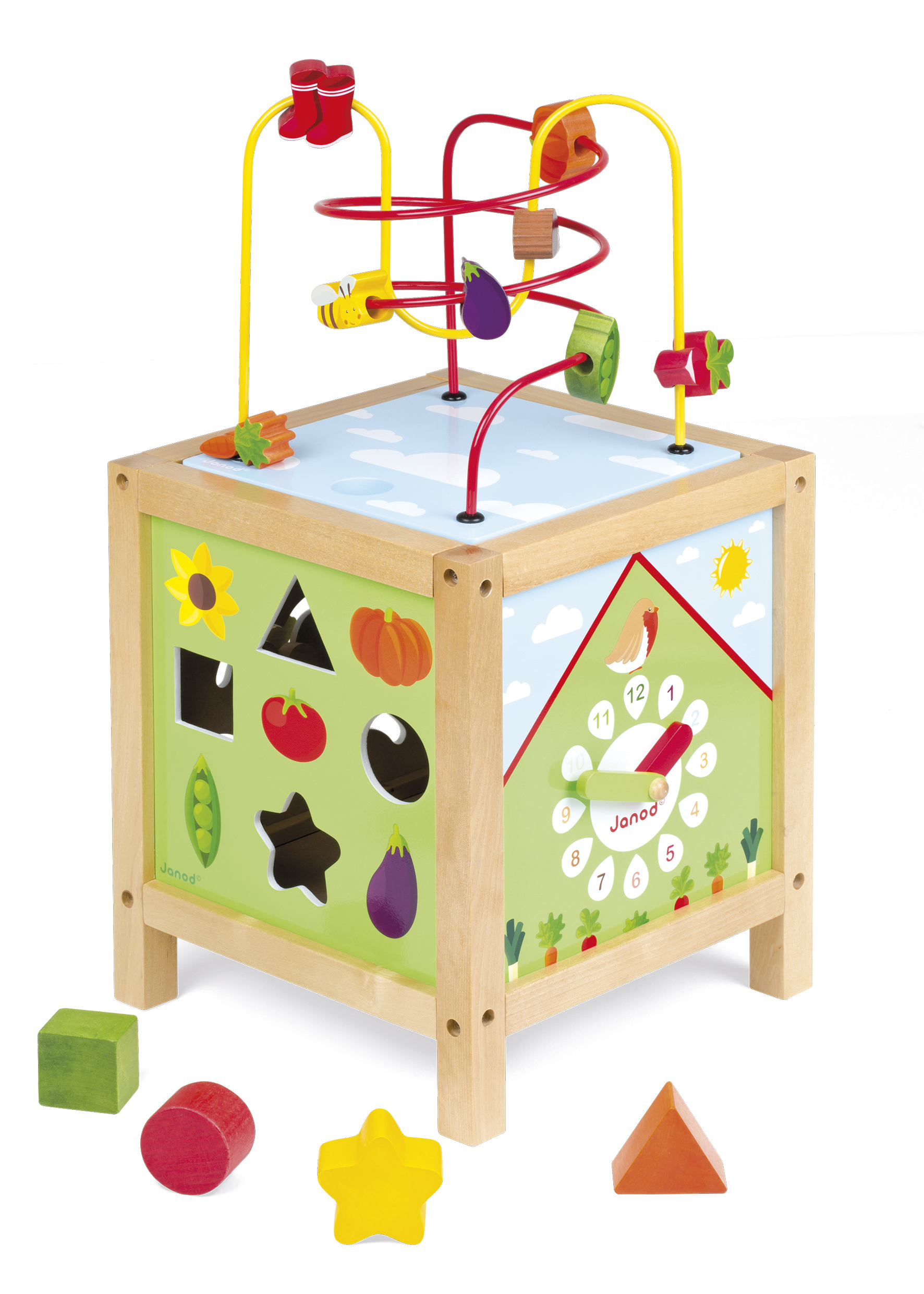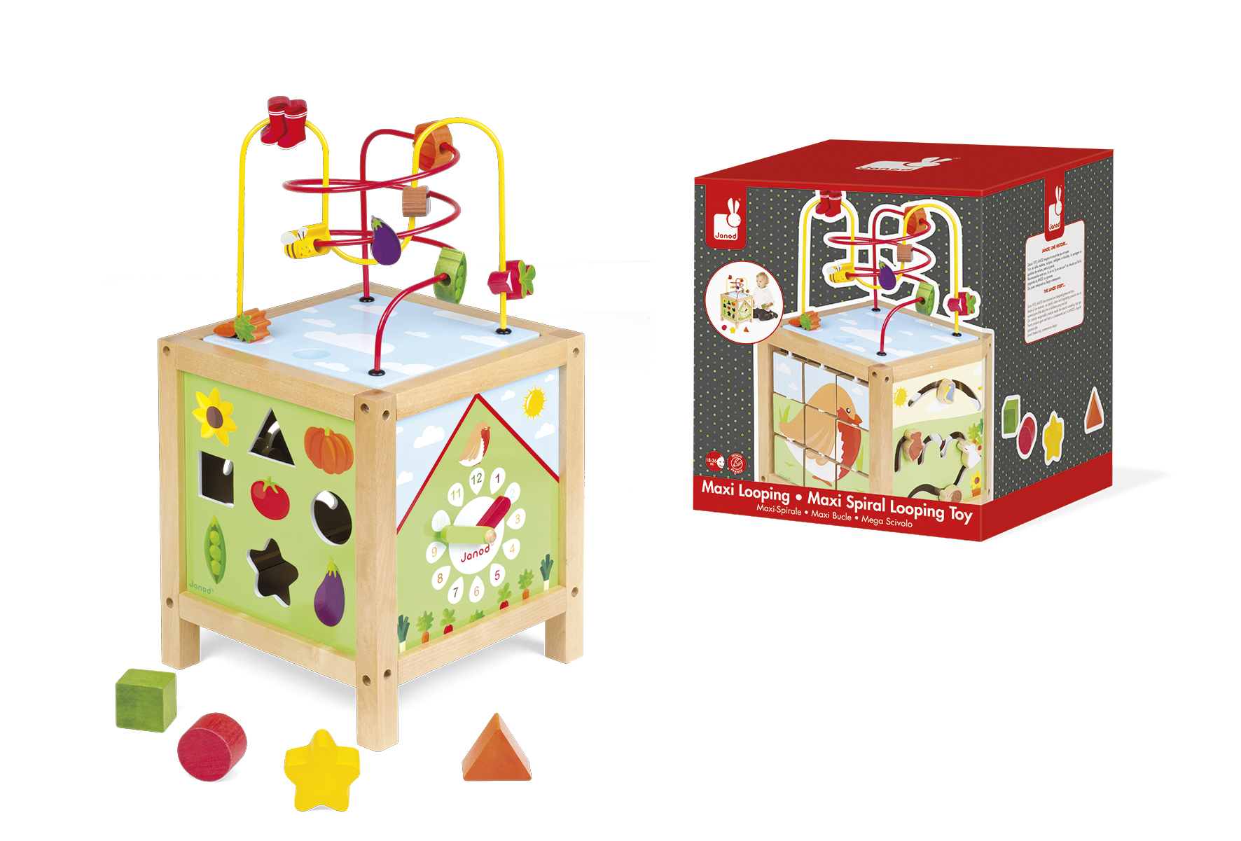 Maxi Looping avec 5 activités: une horloge pour apprendre l’heure, Puzzles rotatifs pour l’apprentissage de la logique, 3 labyrinthes pour le développement de la dextérité, 4 cubes à encastrer pour apprendre les formes et les couleurs, un boulier pour que votre enfant développe sa concentration et sa motricité Pratique, le boulier se retourne pour un rangement plus facile. Cube en hévéa (montants naturels) et MDF (pour les faces imprimées), perles en lotus et fils en métal. Boite fermée