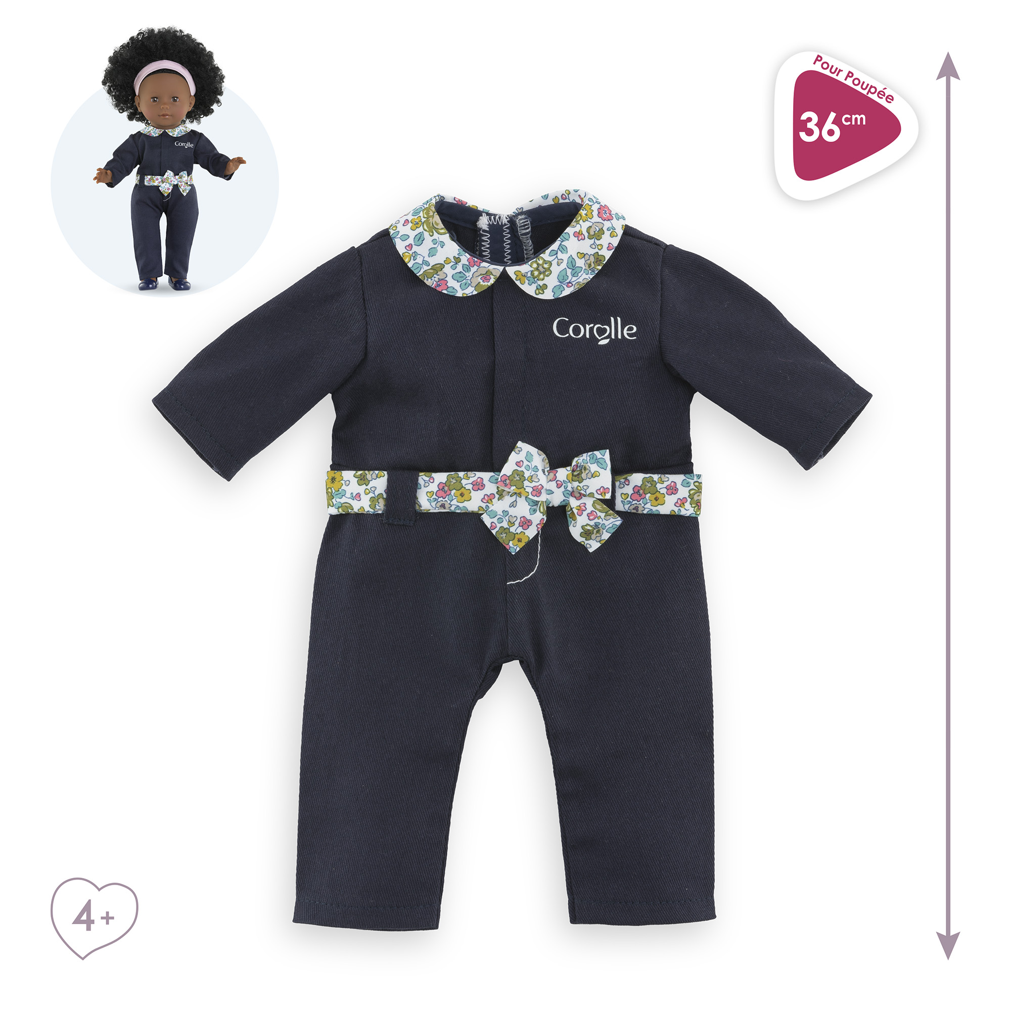 Combinaison marine et fleurie pour poupée ma Corolle de 36 cm, un ensemble ultra tendance et indispensable tout au long de l'année. Ce vêtement ne peut pas être porté par un grand poupon de 36 cm. ma Corolle : Ma poupée, Mes histoires ! Dès 3 ans.