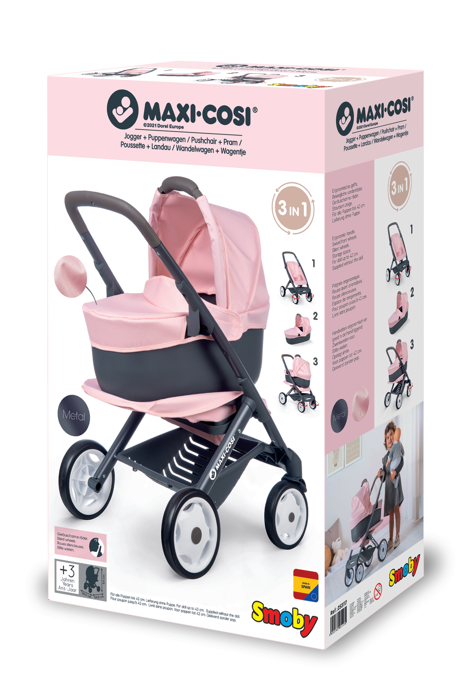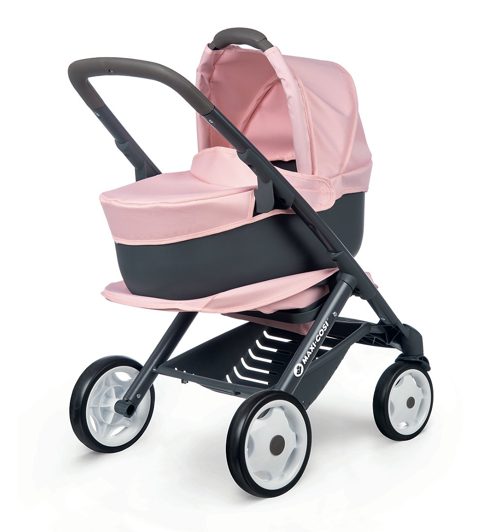 Une poussette hyper complète pour emmener ton poupon partout avec toi ! 3 en 1 cette poussette te permet de choisir l’option qui te convient le mieux à chaque moment ! Grâce à la poignée de transport de la nacelle amovible tu pourras facilement amener ton poupon chez ta nounou ou tes grands-parents ! Ton bébé pourra poursuivre sa sieste dans le landau : il te suffira simplement de poser la nacelle sur la poussette ! Lors des journées ensoleillées tu pourras utiliser la poussette seule afin que ton bébé puisse observer le paysage. La ceinture de sécurité lui permettra d’être parfaitement maintenu ! Tu pourras aussi utiliser le siège Maxi-Cosi (non inclus) avec la poussette puisqu’il est compatible avec sa structure. De plus, les balades seront agréables et paisibles grâce aux roues silencieuses et multidirectionnelles ! Tu deviendras vite une véritable maman ou un véritable papa, et tu pourras prendre soin de ton poupon tout au long de la journée grâce au grand panier de rangement qui te permettra de transporter de nombreux accessoires ! A partir de 3 ans. Fabrication espagnole.