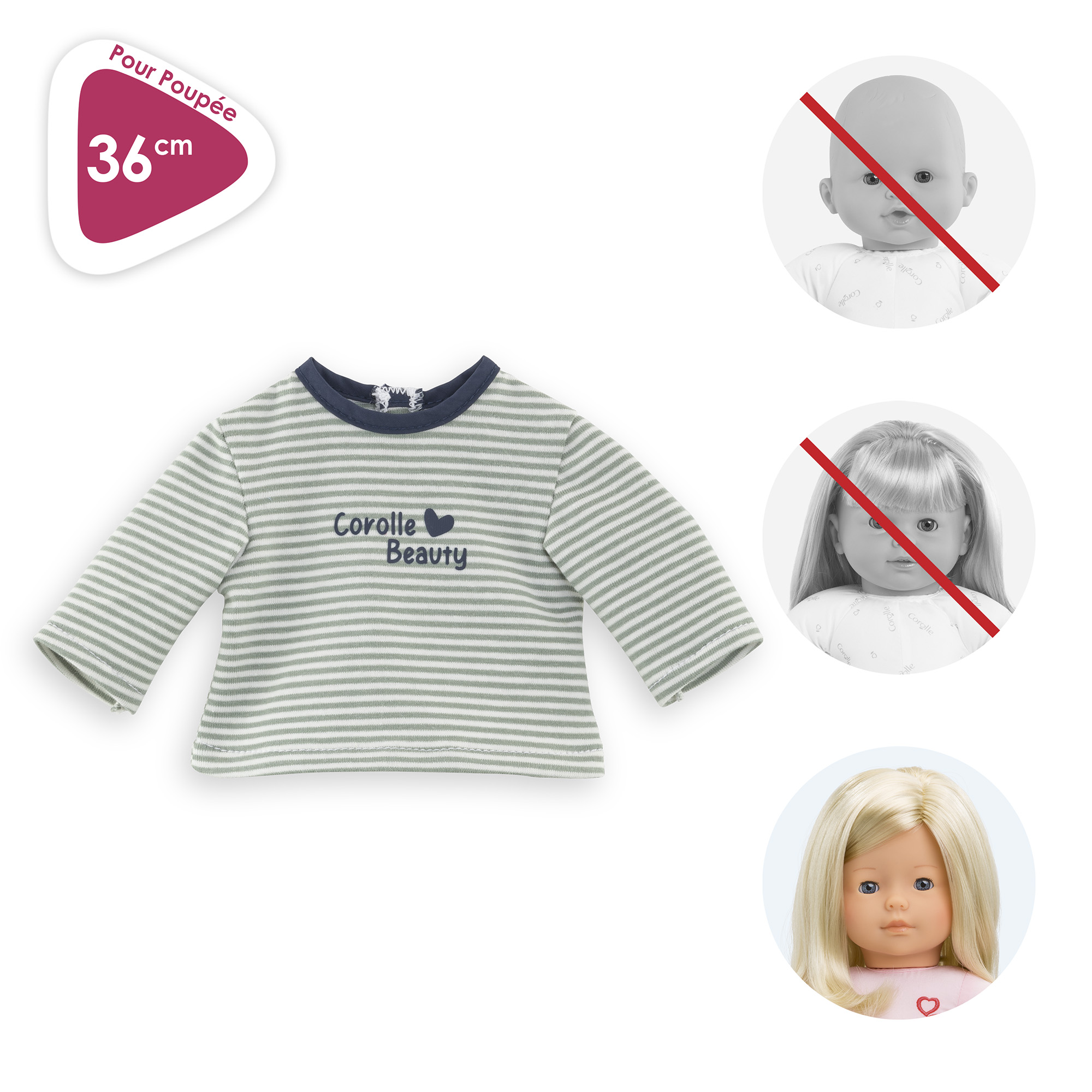 T-shirt rayé manches longues pour poupée ma Corolle de 36 cm, à porter en mode casual avec un jean, un legging ou encore une jupe ! Ce vêtement ne peut pas être porté par un grand poupon de 36 cm. ma Corolle : Ma poupée, Mes histoires ! Dès 3 ans.