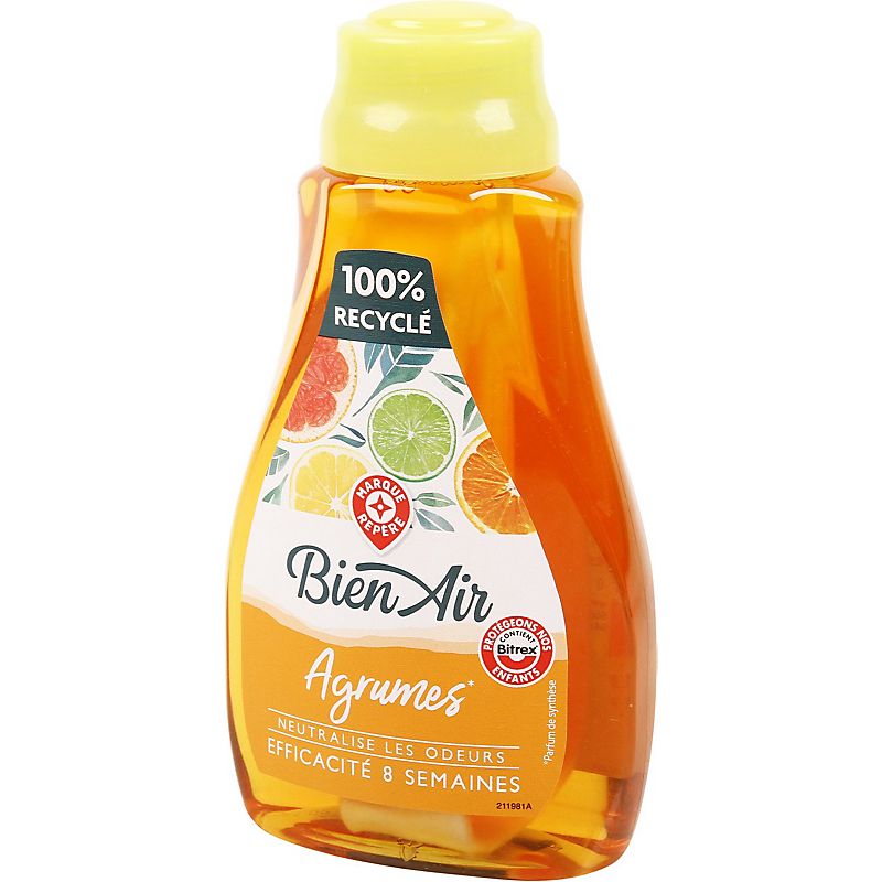 Je ne comprends pas vraiment les commentaires négatifs concernant ce produit... Entre ceux qui se plaignent du côté trop "chimique", d'autres qui se plaignent tout simplement de l'intensité... Il faudrait accorder vos violons. Pour le prix, le produit est suffisant. Je trouve qu'il diffuse très bien et retient bien les mauvaises odeurs. Il sent très bon les agrumes et n'est pas entêtant (nous avons pourtant des petites toilettes). Pour l'usage que l'on en fait je le trouve efficace et le rapport qualité prix est bon. Si vous recherchez une qualité ultime à bas prix, revoyez vos critères et tournez vous vers les grandes marques. Bref, je recommande ce produit.