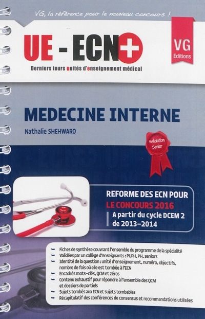 La collection «UE ECN+» est la suite logique de la collection «Derniers Tours ECN +» qui est devenue la référence pour la préparation aux ECN et aux examens de partiels. Le programme du nouvel ECN sera appliqué dès la rentrée 2013 pour le cycle de DCEM 2 de 2013-2014 et pour l'ECN 2016. Profondément modifié sur le fond et la forme, celui-ci compte désormais 362 items répartis en 13 Unités d'enseignement ou UE. Avec cette nouvelle édition, c'est une remise à jour complète conforme au nouveau programme des ECN et aux dernières conférences de consensus qui a été réalisée, associée à de nombreux ajouts et à une relecture-validation par des collèges de seniors, PH et PUPH dans chaque spécialité. Ces fiches de synthèse classées par question couvrent l'ensemble du programme de la spécialité. Chaque item débute par une fiche d'identité précisant : l'unité d'enseignement, le numéro de la question, ses objectifs et le nombre de fois où elle est tombée aux ECN. Un encadré grisé vous précisera les mots-clés QCM et zéros de la question concernée. La fiche en elle-même sera présentée de façon exhaustive afin de pouvoir répondre à l'ensemble des QCM et dossiers de partiels. A la fin de chaque chapitre, les sujets tombés aux ECN et les sujets tombables seront notés dans un cadre détaillé. Les conférences de consensus ou recommandations des sociétés savantes utilisées seront quant à elles répertoriées dans un tableau récapitulatif.