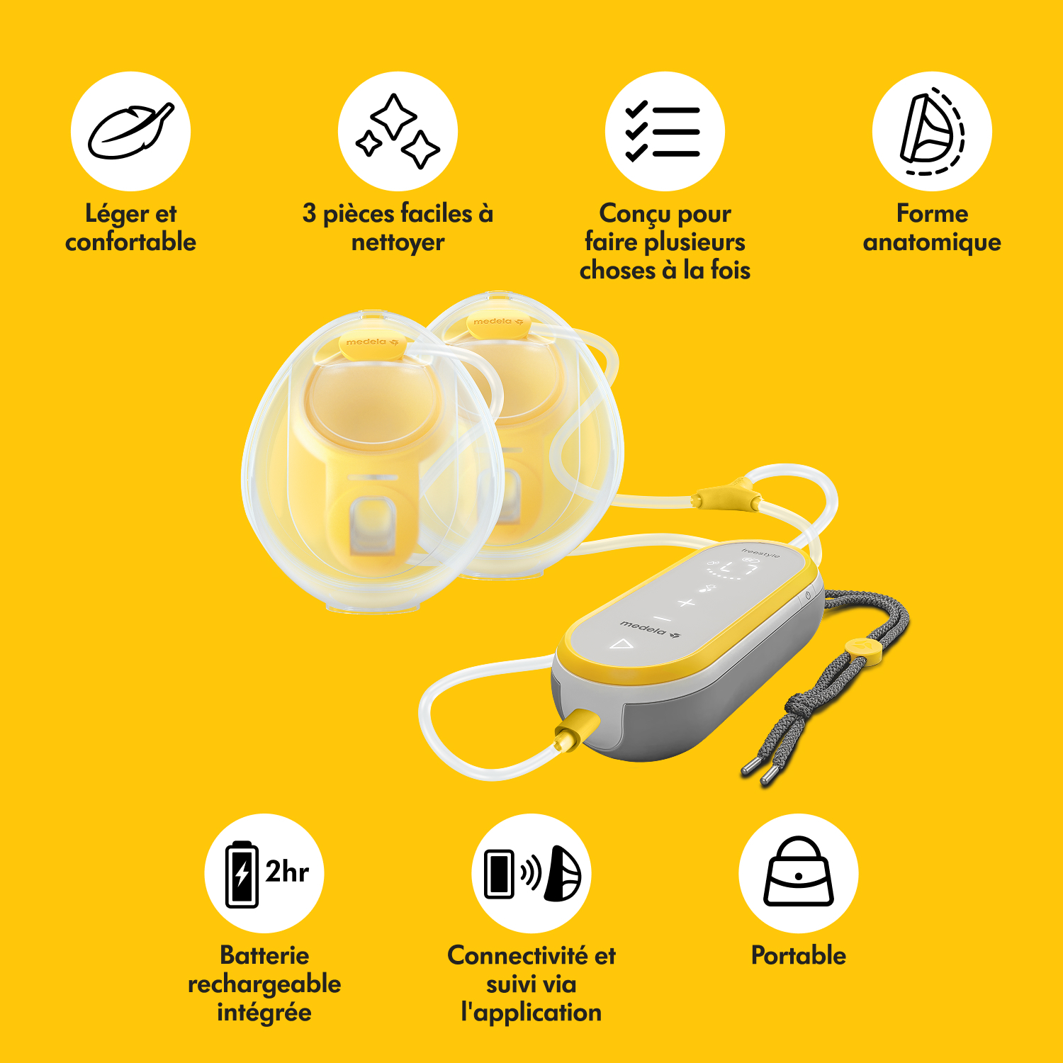 - Discrétion : Collecteurs placés dans le soutien-gorge pour une utilisation discrète en toutes circonstances.
