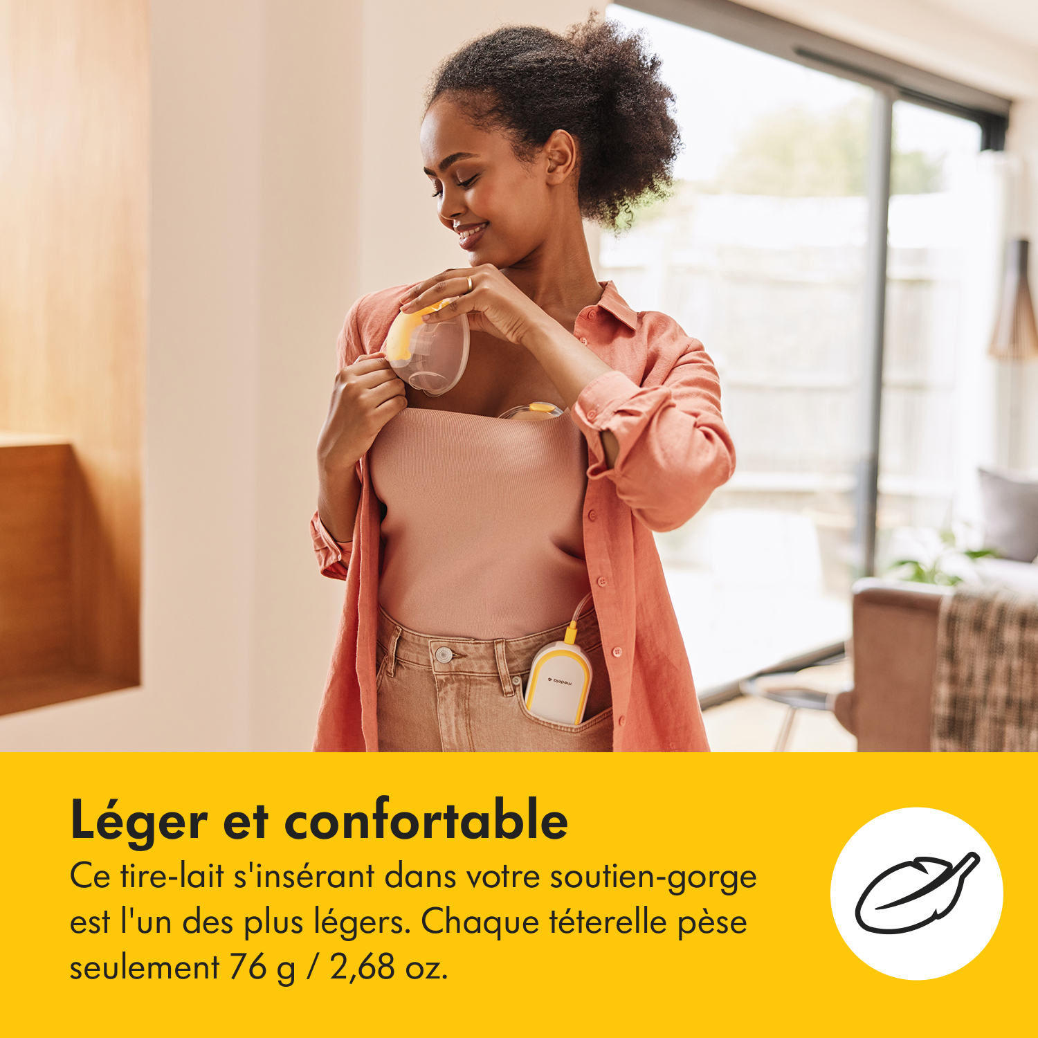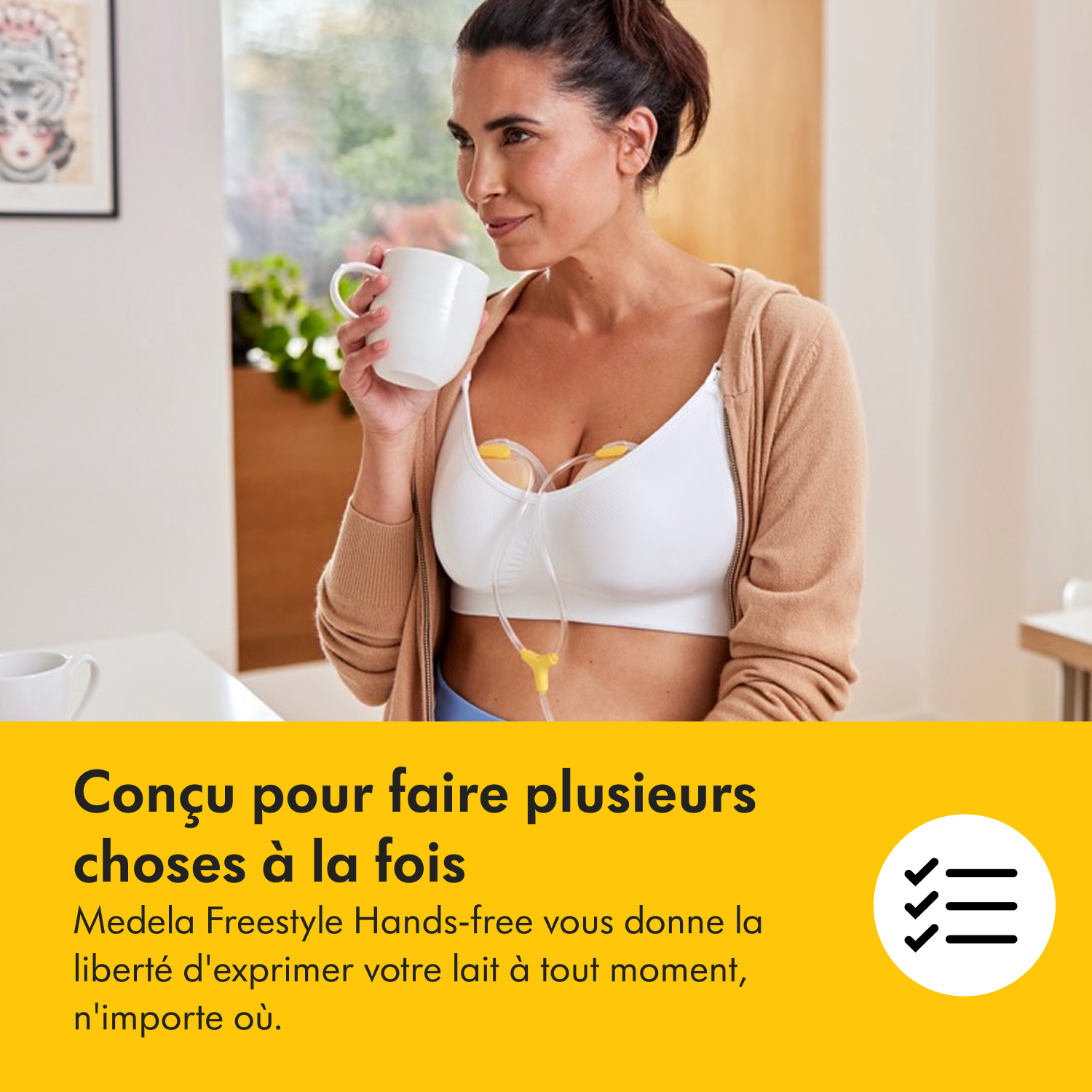 - Mains libres : Permet d’exprimer le lait tout en vaquant à vos activités quotidiennes.