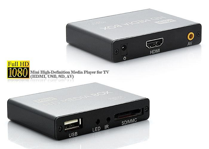 Petite et légère, la passerelle multimédia tient dans la main ! Emportez-la où vous le souhaitez et partagez vos fichiers avec vos proches. Muni de différents ports (HDMI, SD, USB, AV) votre expérience utilisateur ne sera que facilité et praticité. Par câble USB ou par insertion, carte SD, clé USB ou disque dur externe trouveront assurément leur place dans ce mediacenter. D'une résolution Full HD 1080, faites vous plaisir en regardant des films et des vidéos en haute définition. Le rendu est tel, que vous pouvez même regarder votre répertoire Blu-Ray en HD. Accédez et visionnez tous vos fichiers audio, vidéo et photos avec ce lecteur multimédia. Réunis dans ce mini boitier multimédia, ils sont directement disponibles via le menu s'affichant sur l'écran de votre téléviseur. Ainsi, naviguez facilement entre vos fichiers avec la télécommande dédiée. Vous pouvez visualiser vos photos en optant pour des effets de lecture tels que le diaporama ou un mode de transition spécifique. Vous pouvez également modifier le temps d'intervalle entre chaque photographie. Même les sous-titres sont accessibles afin de faciliter la lecture des films. Avec la passerelle multimédia, tous vos fichiers médias sont concentrés dans un seul et unique boitier.