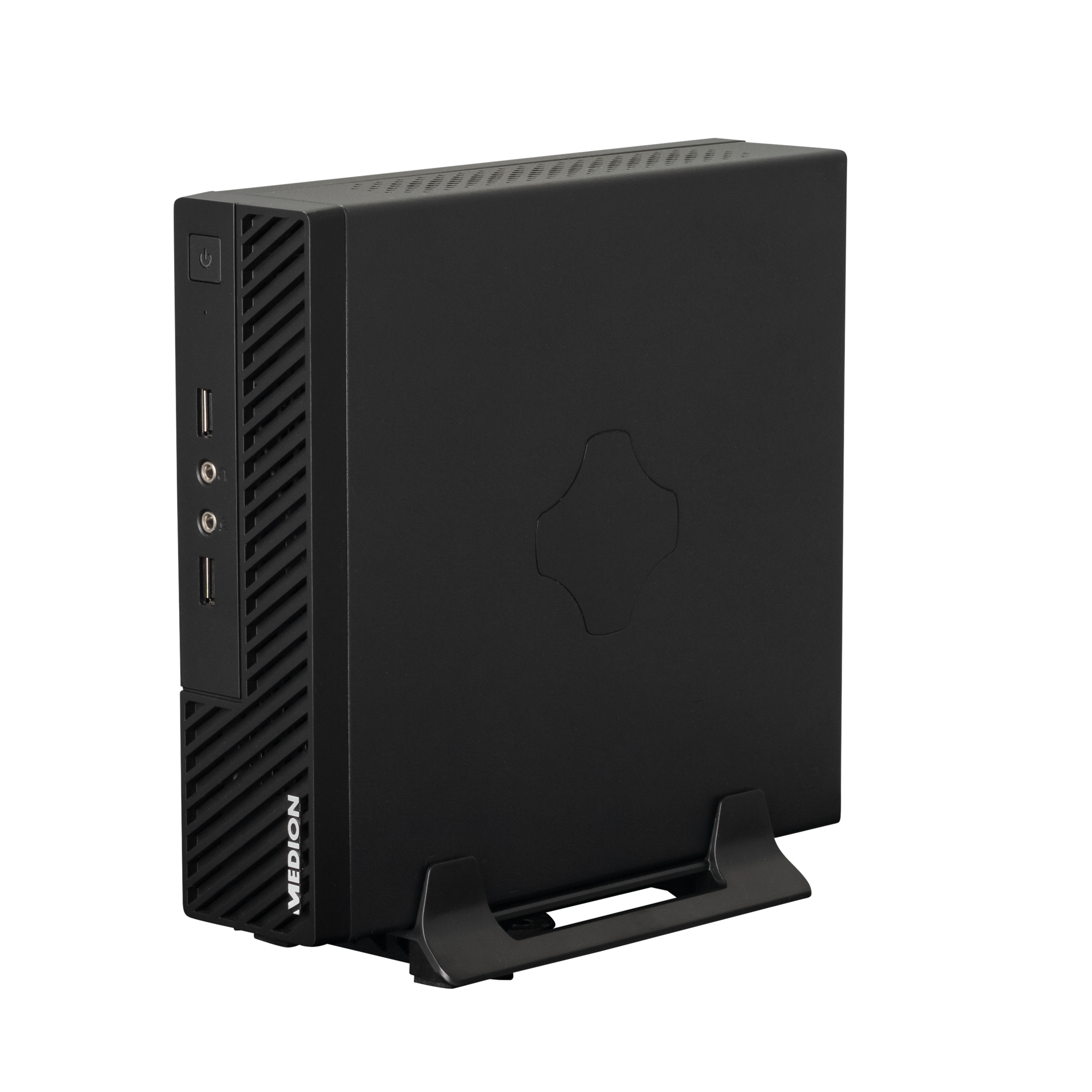 Vous recherchez un PC pour les applications multimédia et bureautiques qui soit aussi peu encombrant et flexible que possible ? Alors ce mini PC de MEDION répond parfaitement à vos besoins : Il suffit de fixer le boîtier compact de l'ordinateur en un rien de temps sur votre écran, votre bureau ou un endroit comparable de votre choix à l'aide du support VESA - le mini-PC MEDION se remarque à peine grâce à sa petite taille et peut être fixé de manière absolument pratique et flexible selon les besoins. Il est donc idéal pour les environnements qui nécessitent un PC entièrement équipé dans un espace réduit ou une configuration matérielle aussi discrète que possible.