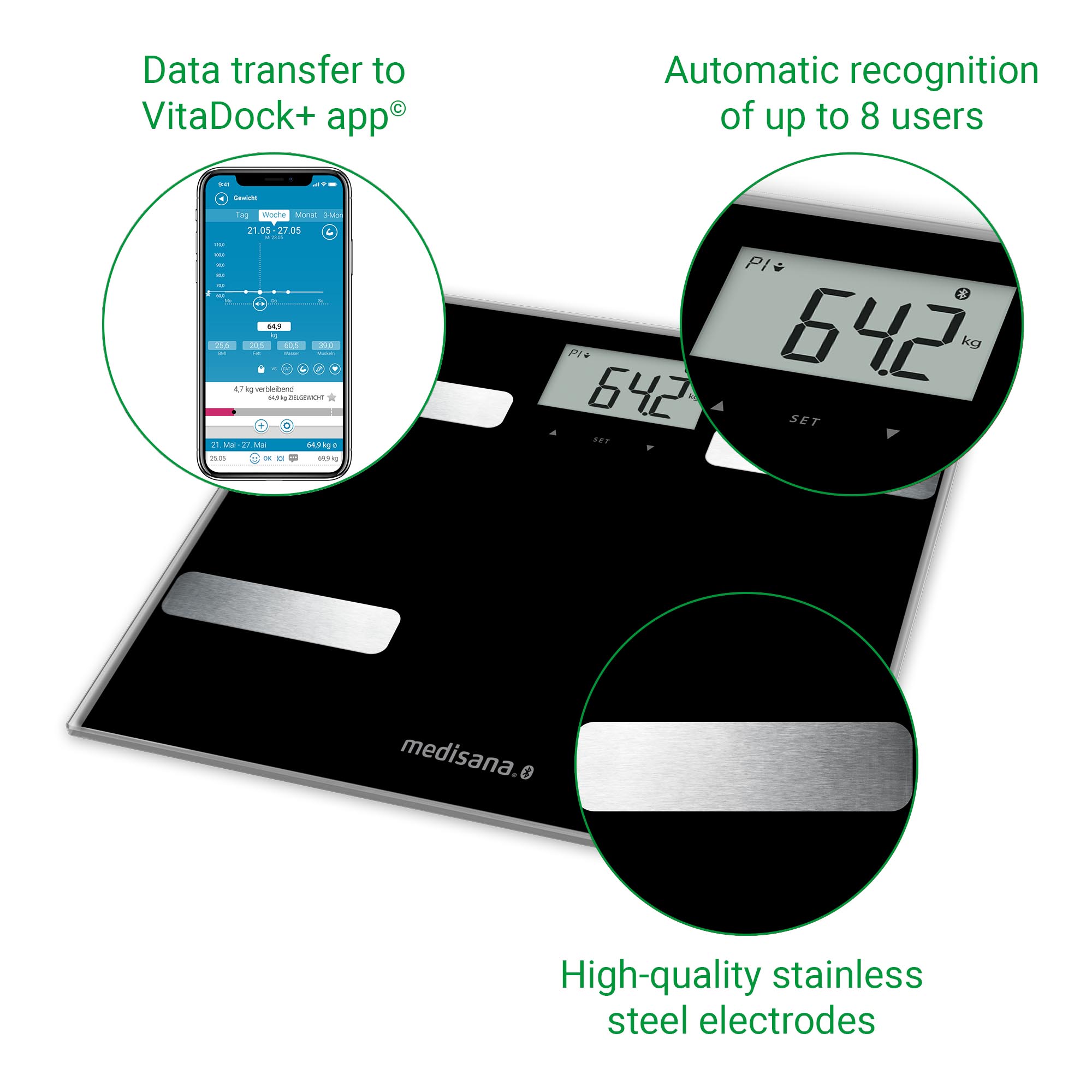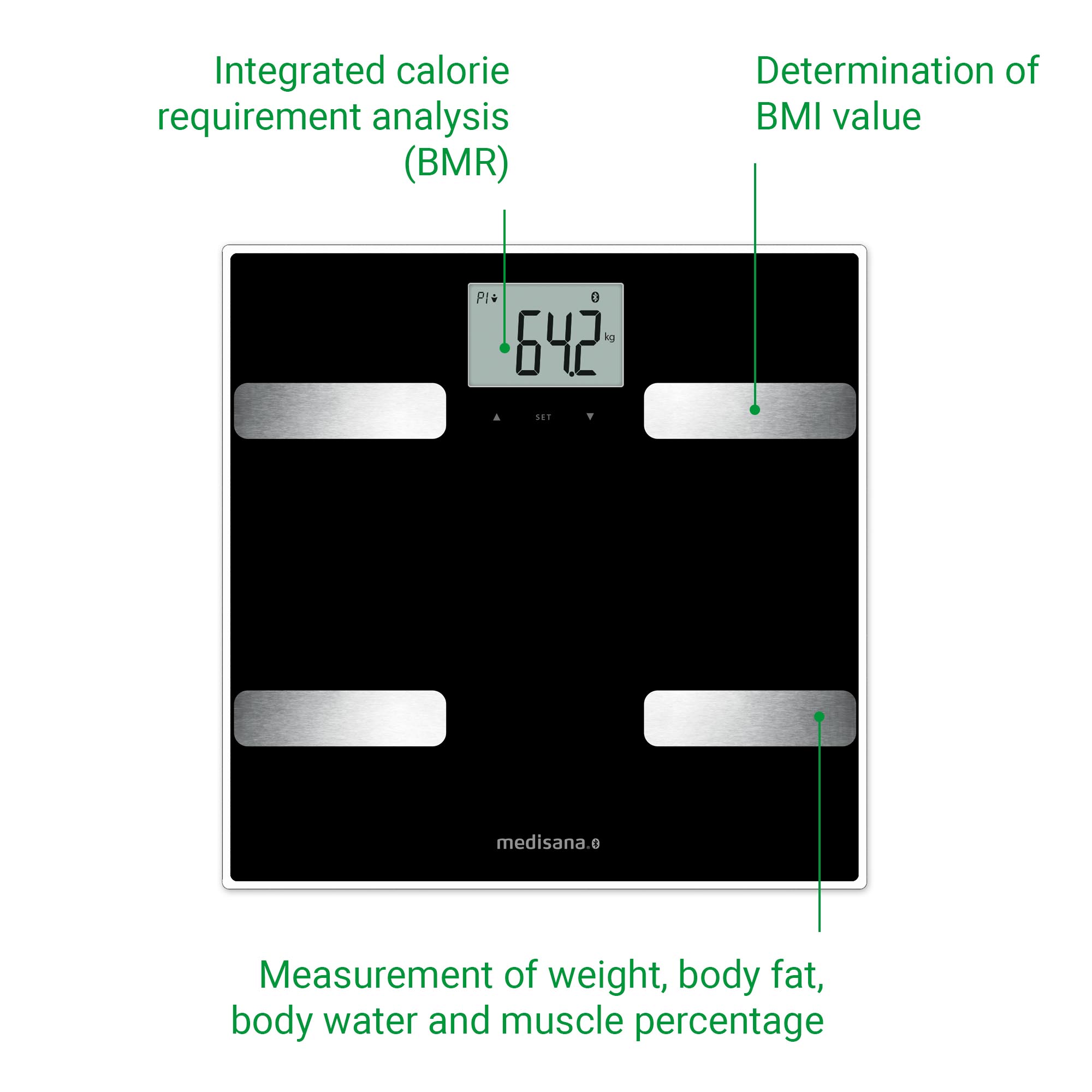 | Libellé | medisana BS A41 connect avec App Balance d'analyse corporelle 180 kg Pèse-personne noir |