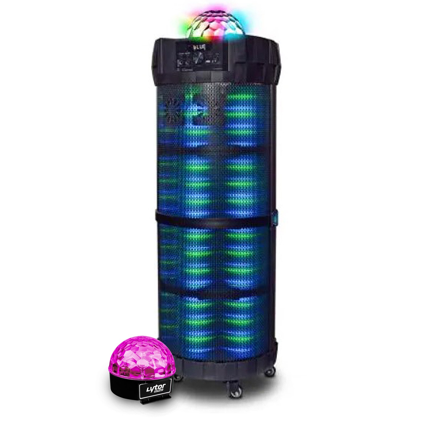 Le haut-parleur Bluetooth Cyclone 6000 vous fournit 360 degrés de son de qualité et de lumières. Puissance totale de 1000 W et batterie rechargeable jusqu'à 8 heures.