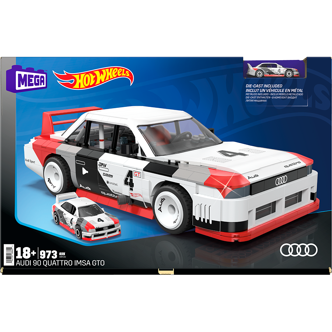 | La boîte contient | Contient 973 briques et pièces pour construire l’Audi 90 Quattro IMSA GTO et une petite voiture en métal Hot Wheels assortie. Les couleurs et les décorations peuvent varier. |