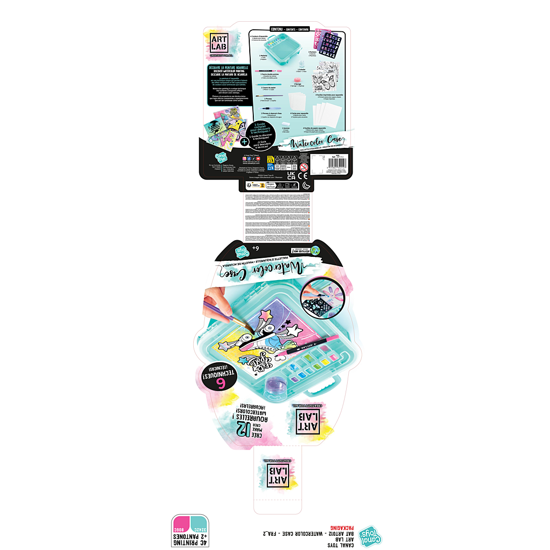 Tout ce dont tu as besoin pour réaliser des peintures aquarelle facilement Dispose ton contenu sur le couvercle et utilise le comme chevalet mélange tes couleurs ajoute de l'eau pour créer de supers effets artistiques avec tous les outils inclus Ré utilise la mallette pour ranger et transporter tes projets