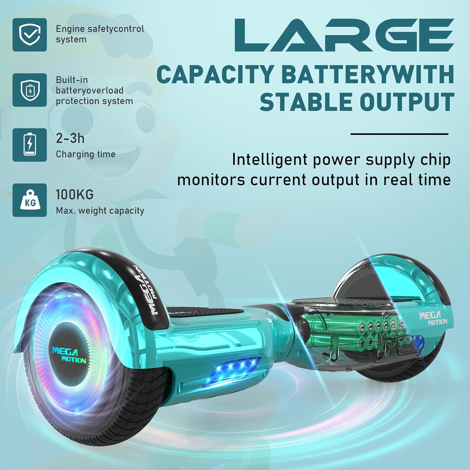 | Libellé | MEGA MOTION Hoverboard 6,5" Noir - deux roues avec Haut-parleur Bluetooth - avec Lumières LED pour Enfants - Vert |