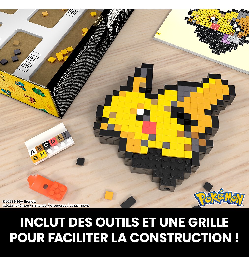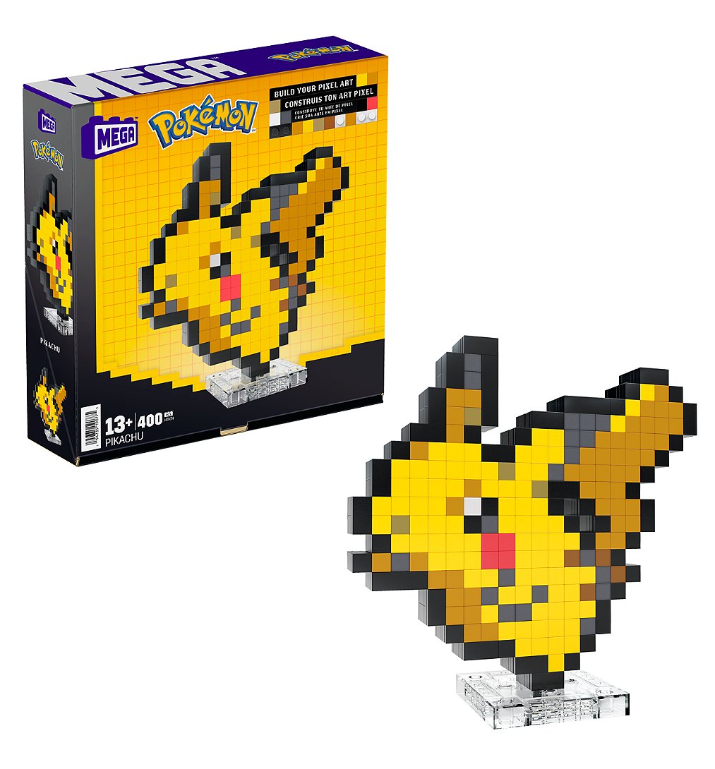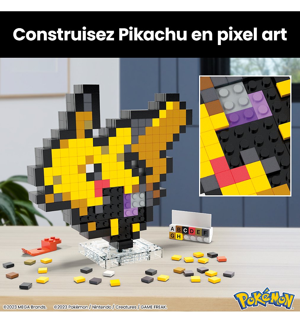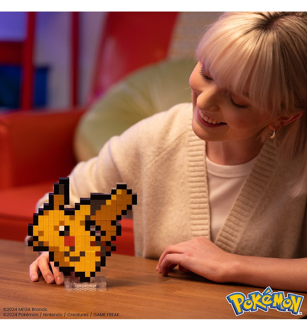 Décorez votre espace et construisez certaines de vos figurines Pokémon préférées avec MEGA. Construisez Pikachu brique par brique et obtenez une figurine de style rétro, fidèle au Pixel Art officiel de Pokémon. Exposez-la sur votre bureau ou fixez-la au mur pour afficher votre passion pour l’univers Pokémon. À associer à d’autres figurines Pokémon de la série ; articles vendus séparément.