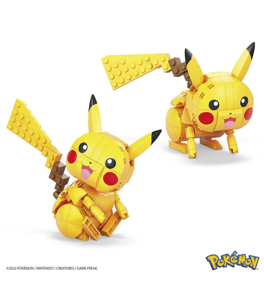 | Plus produit | Cette figurine de Pikachu à construire est articulée et mesure plus de 10 cm\nPikachu arbore des détails reproduisant une attaque électrique sur les joues\nLes briques sont compatibles avec tous les coffrets de construction MEGA et dautres marques de briques de construction.\nIdéal à partir de 7 ans, ce jouet à assembler combine construction et jeu pour développer la créativité et la capacité de résolution des problèmes |