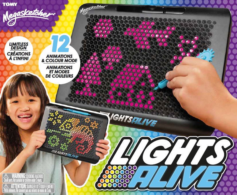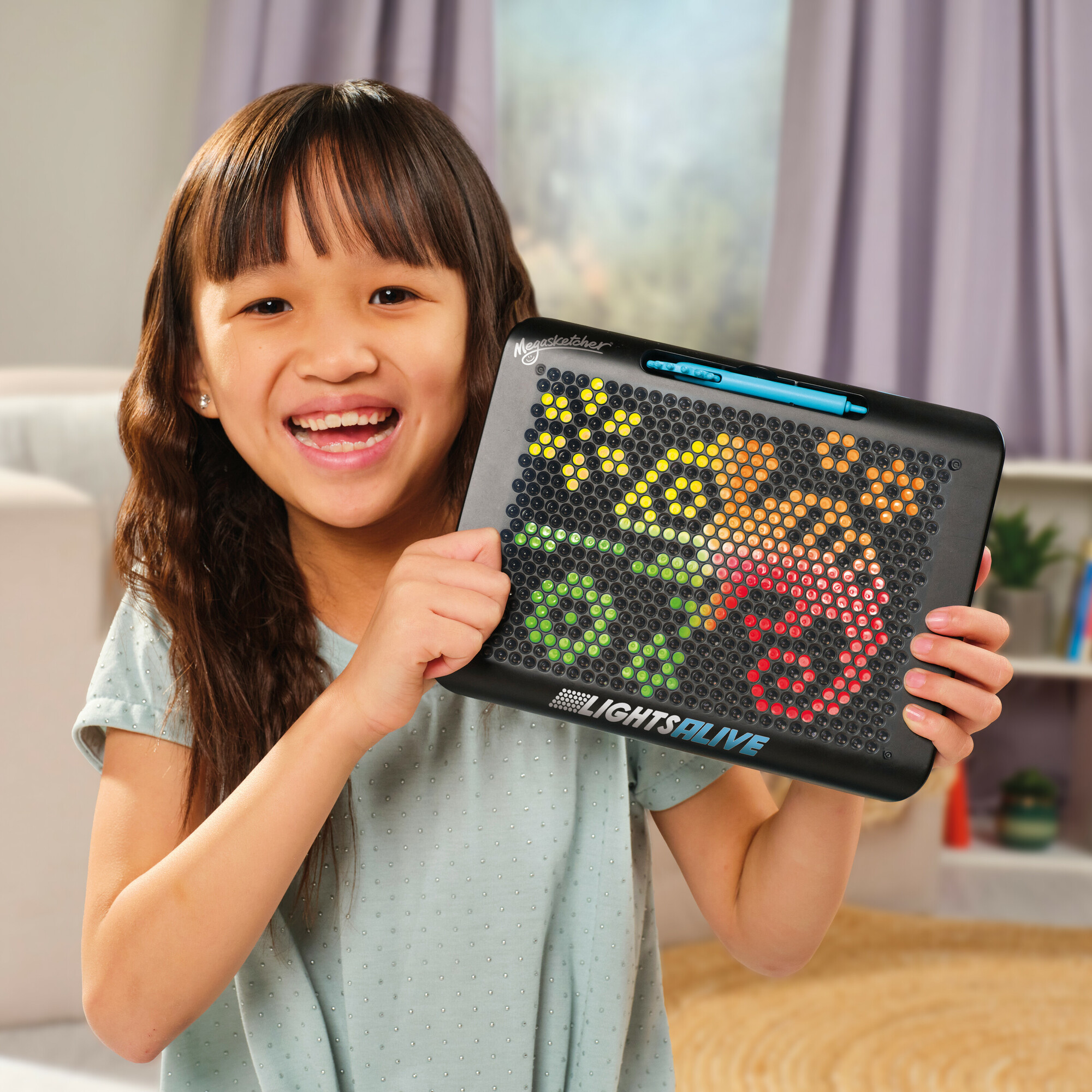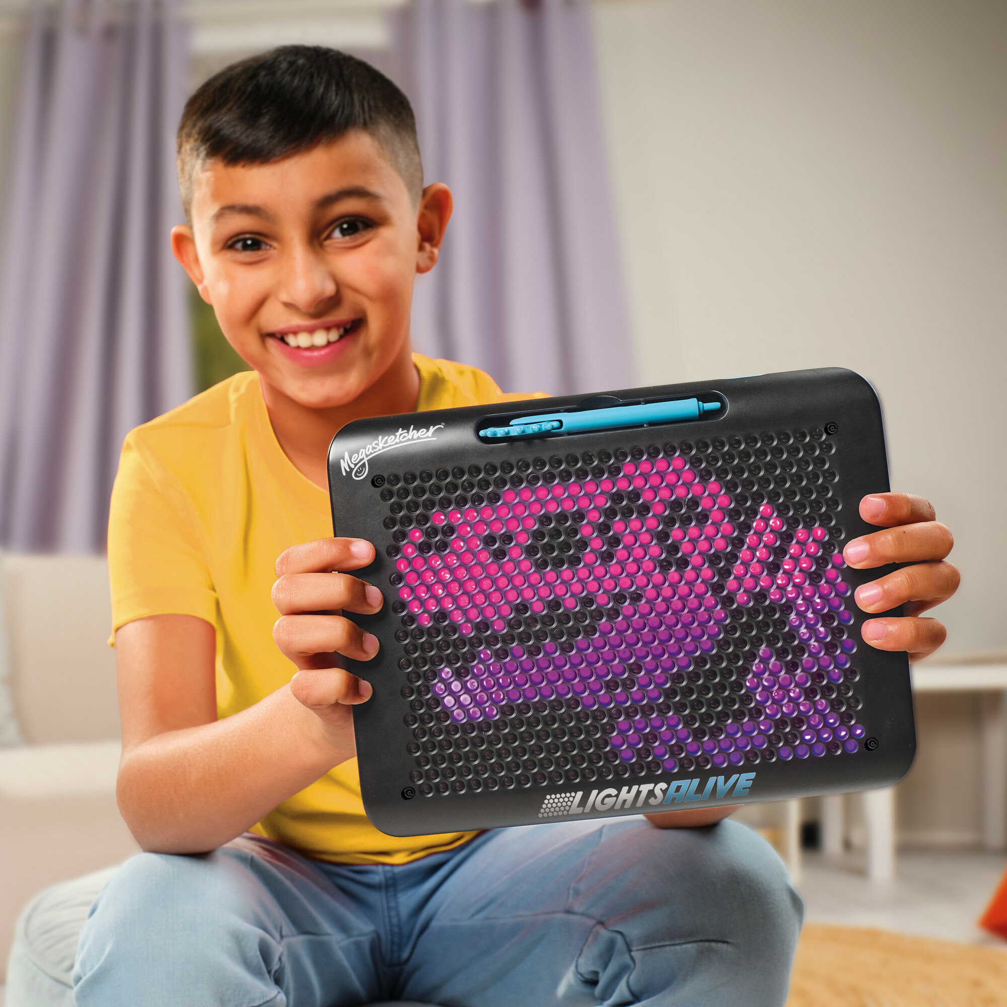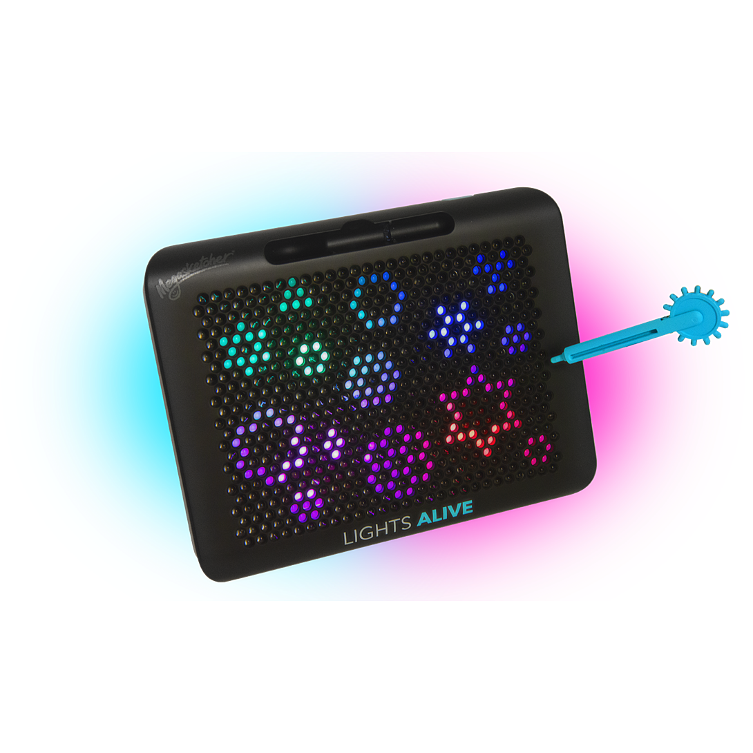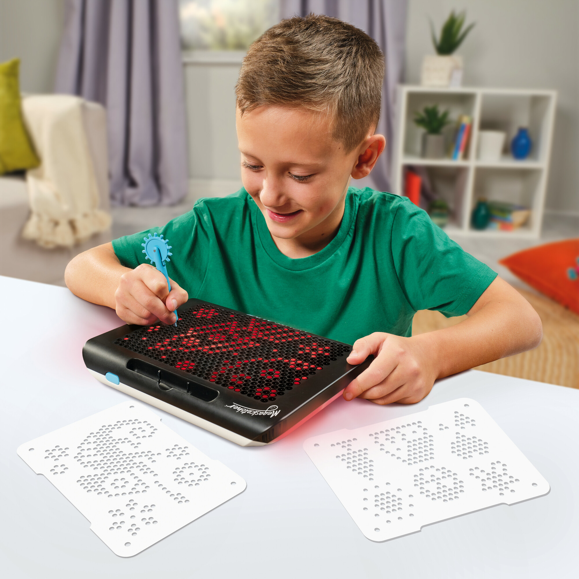 Megasketcher Lights Alive apporte une touche innovante aux ardoises magnétiques, enrichissant l’expérience de dessin de votre enfant par des créations à points aux lumières animées et programmées.