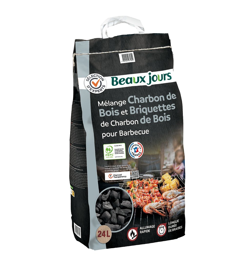 | Libellé | Mélange charbon de bois et briquettes de charbon de bois pour barbecue 24L Sélection d'Experts - Beaux Jours |