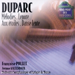 | Liste des pistes | 1.1 . lénore, poème symphonique - Henri Duparc 1.2 . le manoir de rosemonde - Henri Duparc 1.3 . chanson triste - Henri Duparc 1.4 . l'invitation au voyage - Henri Duparc 1.5 . la vie antérieure - Henri Duparc 1.6 . phydilé - Henri Duparc 1.7 . au pays où se fait la guerre - Henri Duparc 1.8 . testament - Henri Duparc 1.9 . la vague et la cloche - Henri Duparc 1.10 . danse lente - Henri Duparc 1.11 . aux étoiles - Henri Duparc |