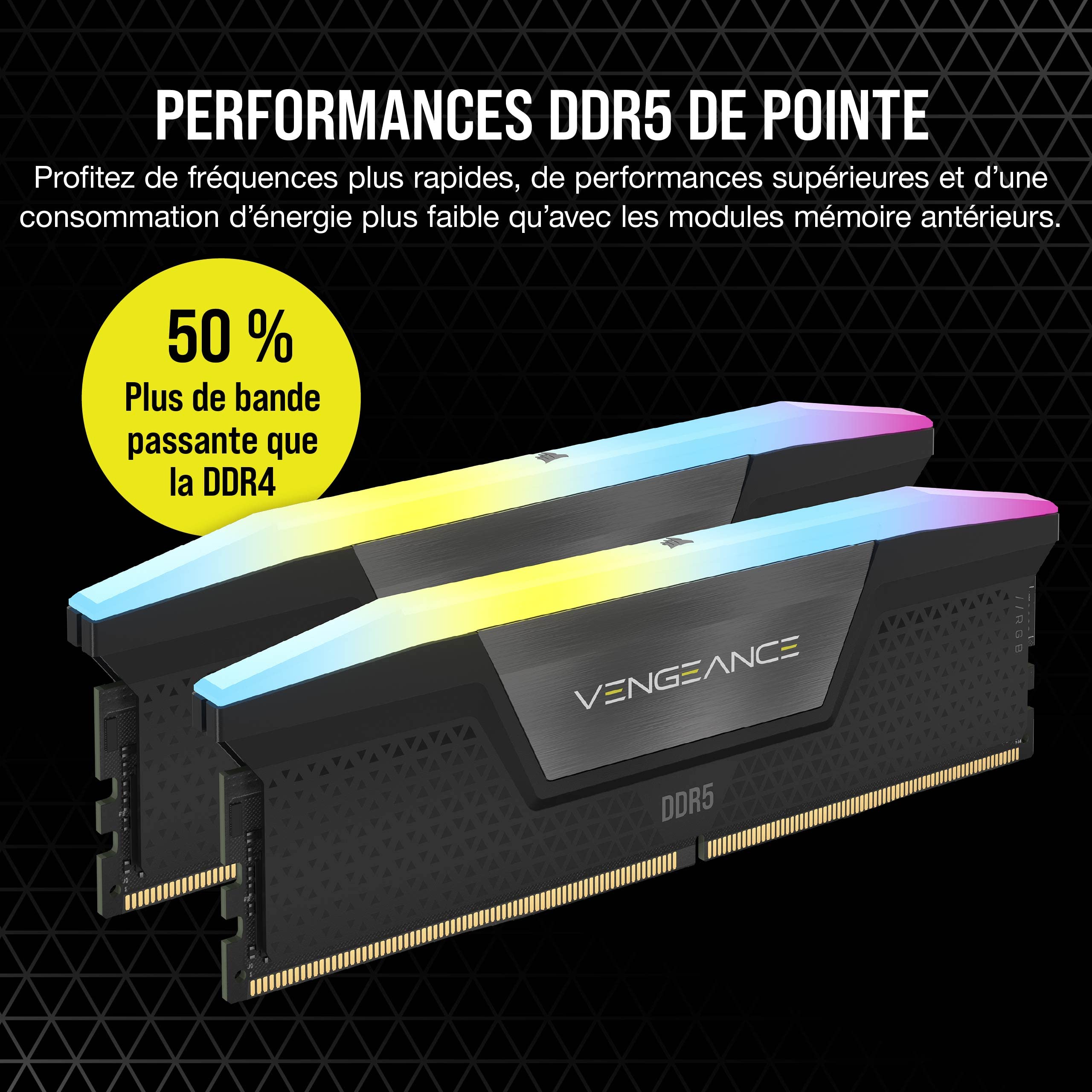 | Libellé | Mémoire RAM Corsair DDR5 64GB PC 6000 CL30 Corsair KIT (2x32GB) VENGEANCE RGB B retail (CMH64GX5M2B6000C30) |