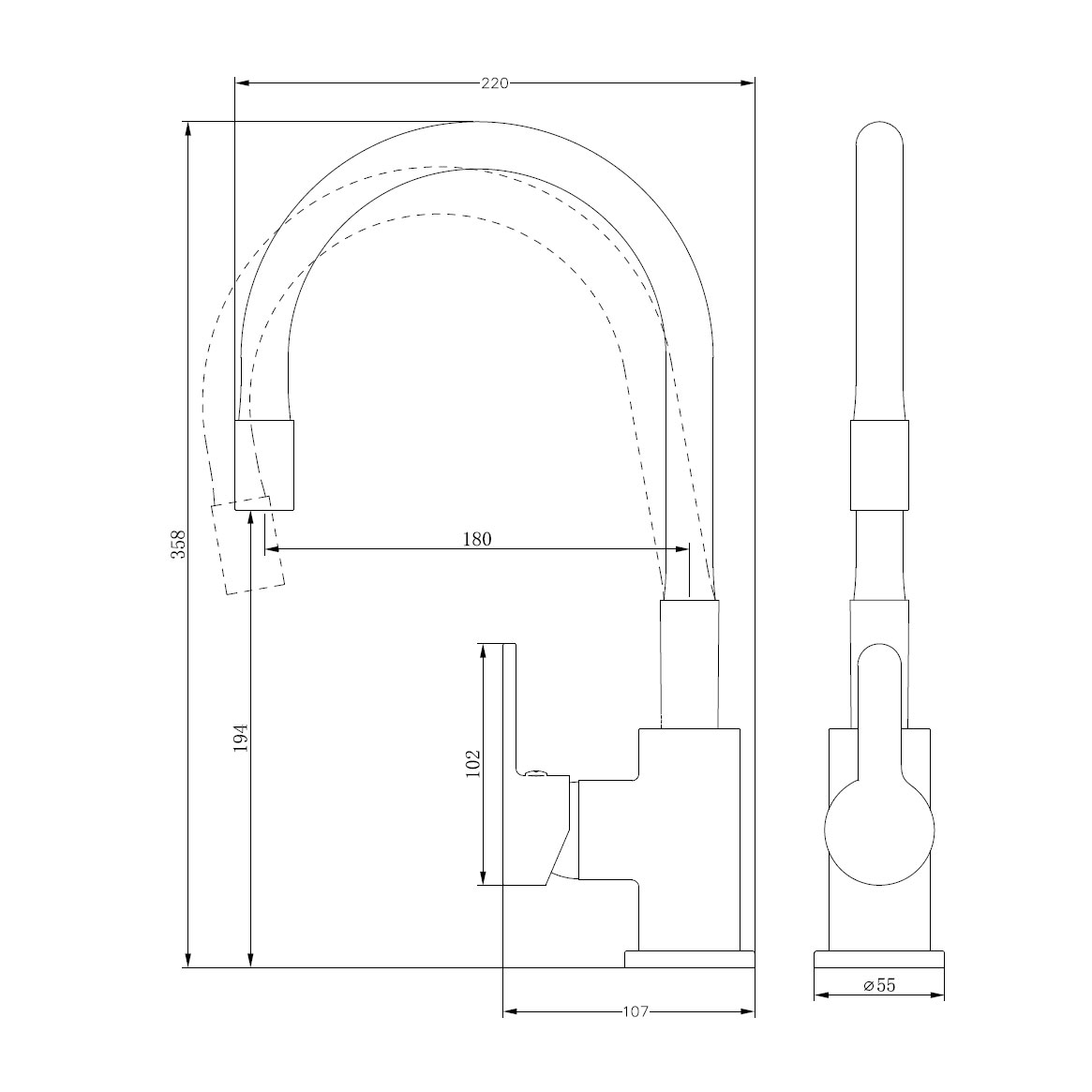 Vérifiez que la longueur du bec est compatible avec votre évier (voir dessin technique)