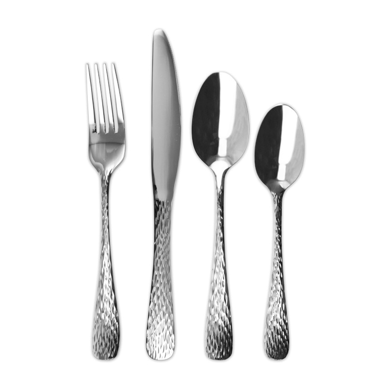 Cette ménagère TB Collection se compose de 16 couverts de tables en acier inoxydable au look graphique et élégant. Fourchettes, couteaux, cuillères de table et cuillères à café, la ligne contemporaine de ces couverts design pour 4 personnes aux manches forgés en inox confère un style très chic à votre table.