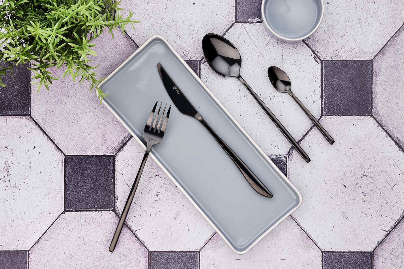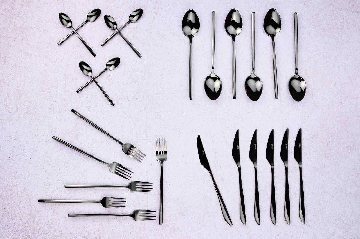 Fabriqué en acier inoxydable pour résister à une utilisation quotidienne, ces couverts sont durables et d'un entretien facile au lave-vaisselle. Dans sa version de couleur noire avec une finition brillante, ce modèle à l'effet miroir chic et éclatant illuminera votre table et étonnera vos convives.
