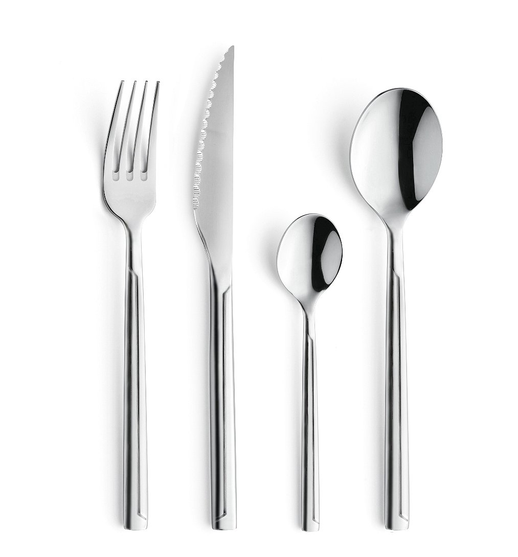 En acier inoxydable, 6 fourchettes de table, 6 couteaux de table, 6 cuillères à soupe, 6 cuillères à café