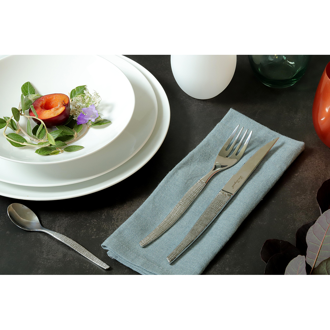 Acier 18/0 épaisseur 2.5mm finition brillant manche décor 2 faces