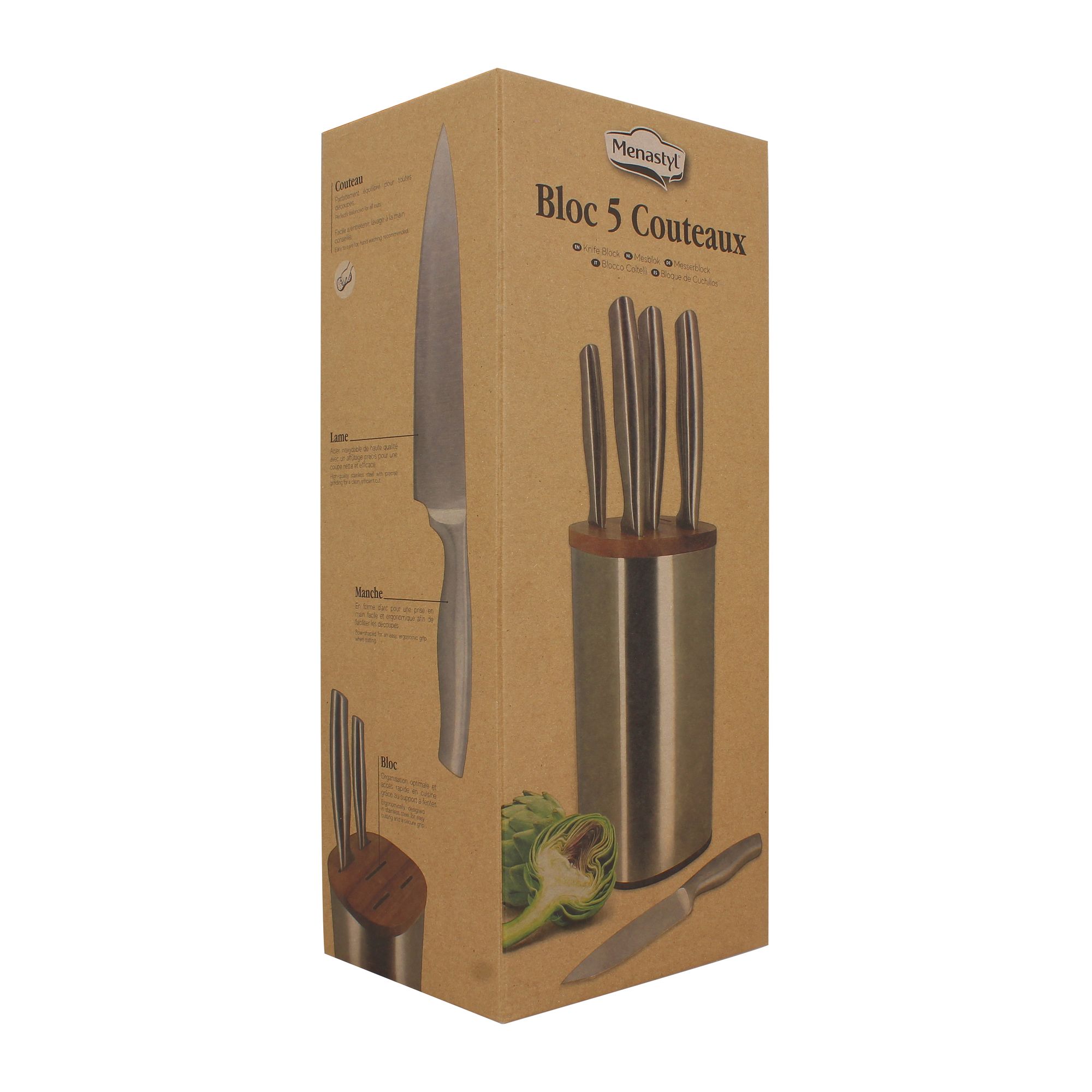 | Libellé | MENASTYL - Bloc A Couteaux 5 Pieces En Acier Inoxydable Et Bois |