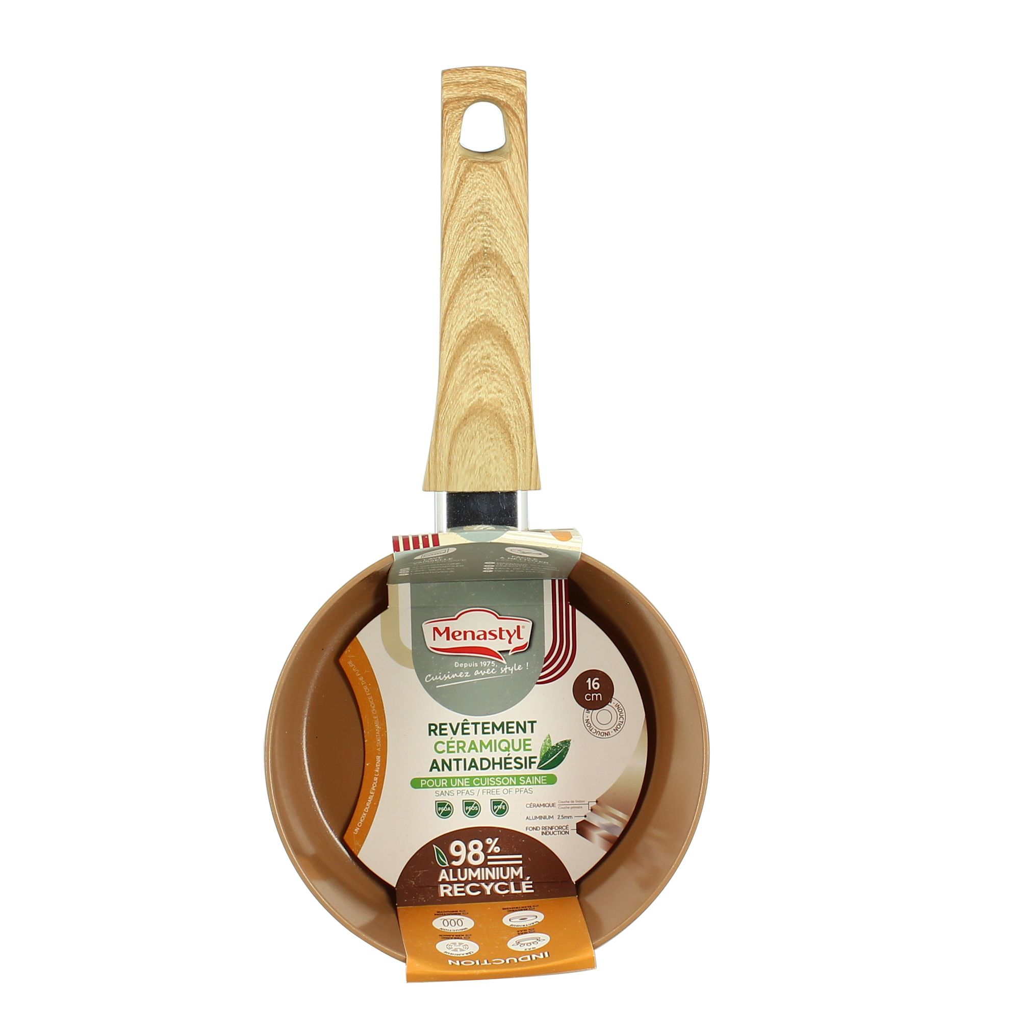 | Libellé | MENASTYL - Casserole 16cm Colorama Noisette - En Aluminium - Revetement Antiadhesif En Ceramique |