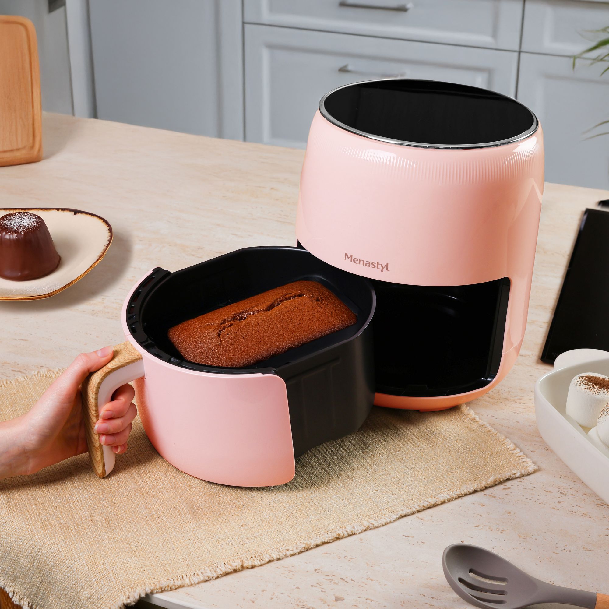Libellé MENASTYL - Friteuse A Air Chaud 4.5l Colorama Rose Avec Poignee Finition Bois