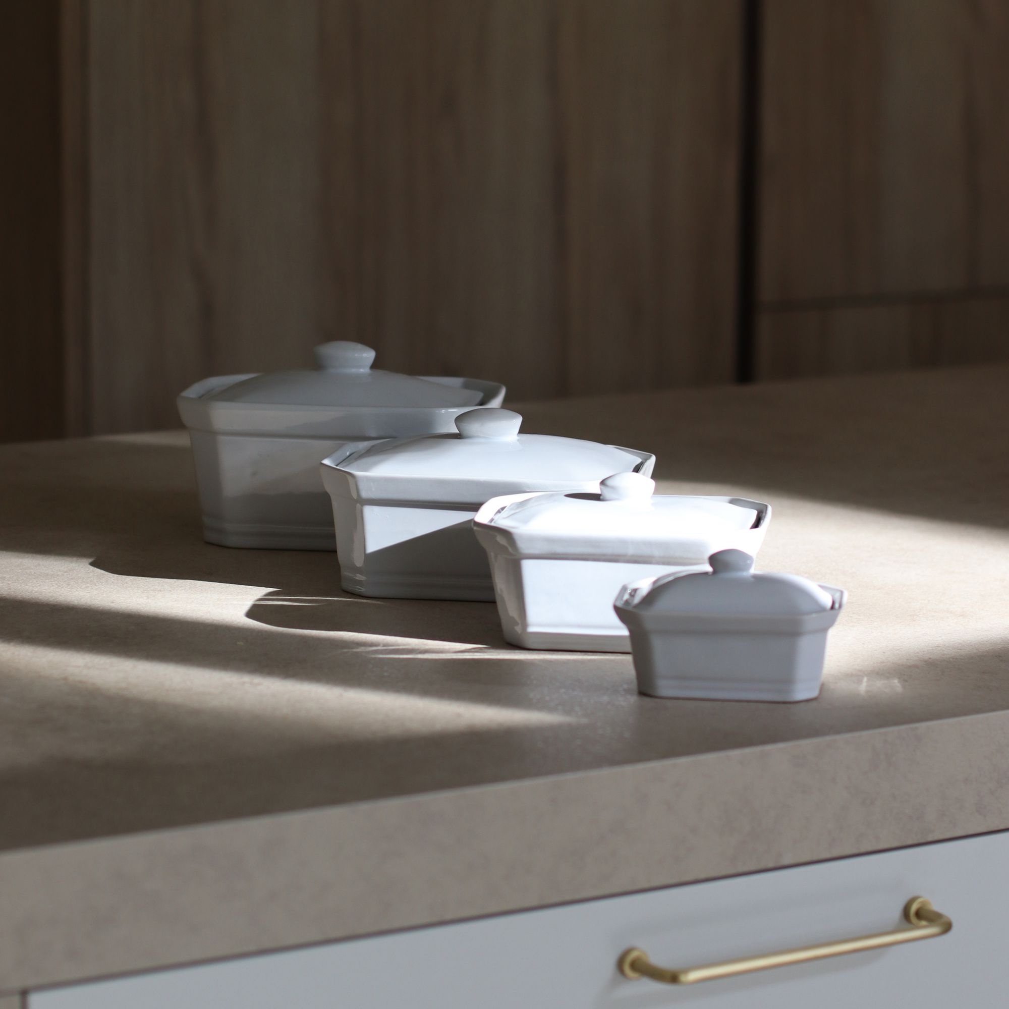 MENASTYL - Terrine Avec Couvercle 400grammes En Gres Blanc 15x11x6.8cm