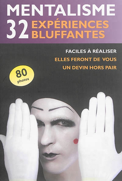 Devinez : . la chaise parmi 6 sur laquelle va s'asseoir un spectateur, . le nombre de cartes choisies au téléphone, . le total formé par les dés jetés par un spectateur, . la couleur d'un crayon tiré à l'aveugle dans un chapeau, . le mot choisi dans un livre auquel pense un spectateur... ... sans aucun entraînement ni don particulier !