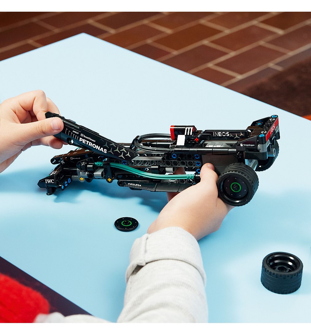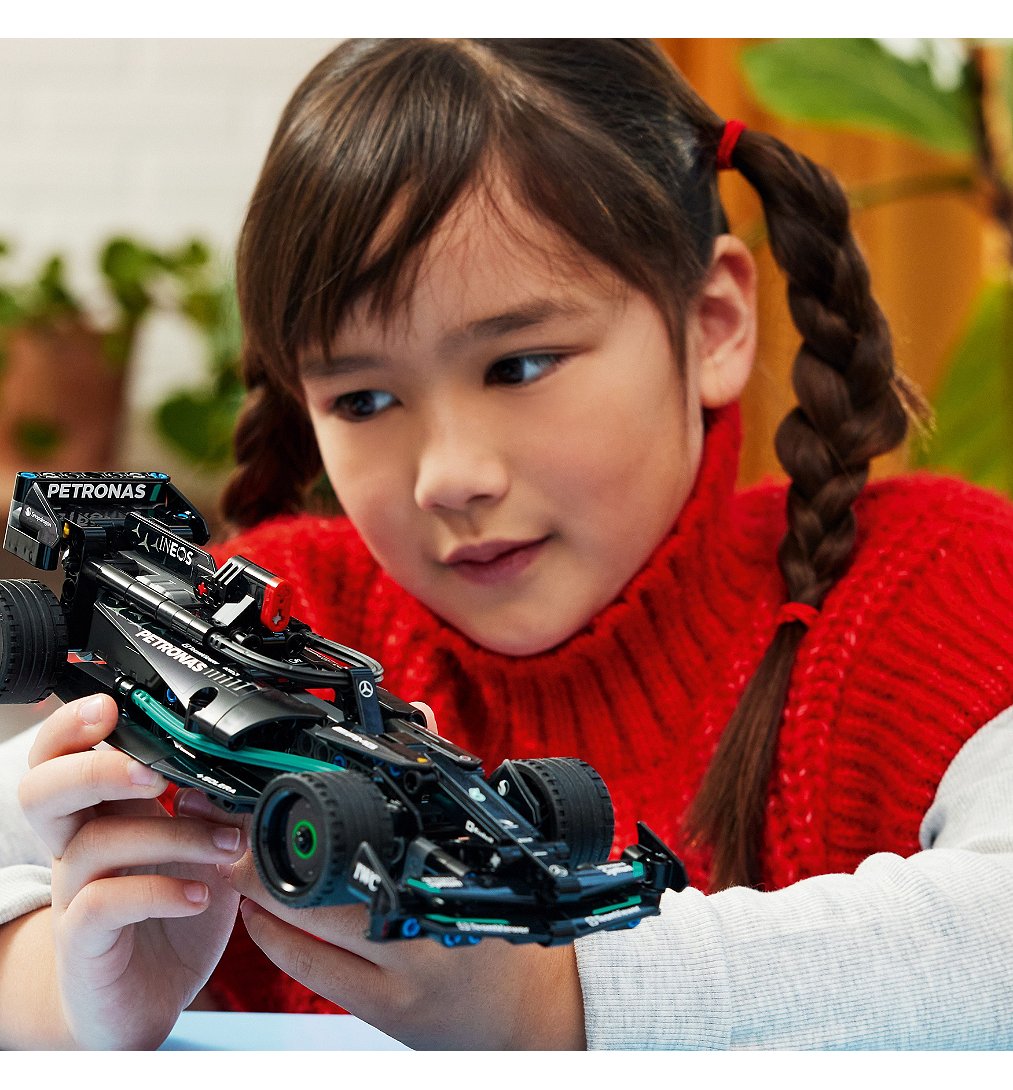 Proposez un projet de construction palpitant aux enfants dès 7 ans avec la voiture de course LEGO® Technic Mercedes-AMG F1 W14 E Performance Pull-Back (42165). Ce modèle inclut des détails de la vraie voiture et la rétrofriction permet aux garçons et aux filles de la propulser à toute allure pour vivre les frissons de la course. Vous voulez passer un bon moment avec votre pilote en herbe ? Amusez-vous à construire la version pour adultes de ce set : le modèle LEGO Technic Mercedes-AMG F1 W14 E Performance (42171) (vendu séparément). Adultes et enfants pourront ainsi construire leur voiture simultanément. Les sets LEGO Technic présentent des détails réalistes qui font découvrir aux jeunes constructeurs LEGO le monde de l’ingénierie d’une façon accessible. Les enfants vivent une aventure créative encore plus passionnante avec l’application LEGO Builder, qui leur permet de zoomer, de faire pivoter les modèles en 3D, de sauvegarder des sets et de suivre leur progression.