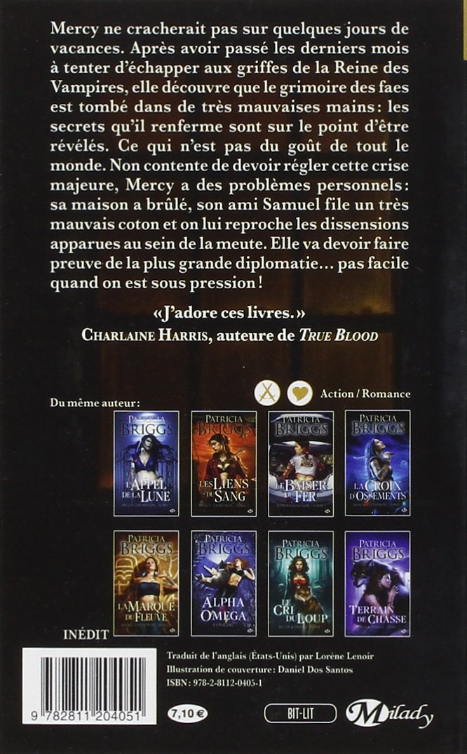 Mercy ne cracherait pas sur quelques jours de vacances. Après avoir passé les derniers mois à tenter d'échapper aux griffes de la Reine des Vampires, elle découvre que le grimoire des faes est tombé dans de très mauvaises mains : les secrets qu'il renferme sont sur le point d'être révélés. Ce qui n'est pas du goût de tout le monde. Non contente de devoir régler cette crise majeure, Mercy a des problèmes personnels : sa maison a brûlé, son ami Samuel file un très mauvais coton et on lui reproche les dissensions apparues au sein de la meute. Elle va devoir faire preuve de la plus grande diplomatie... pas facile quand on est sous pression !