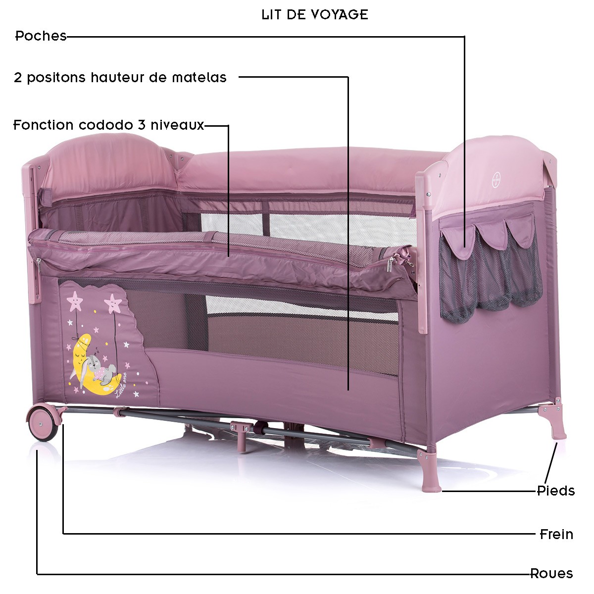 | Libellé | MERIDA Lit parapluie cododo hauteur réglable Rose pastel |
