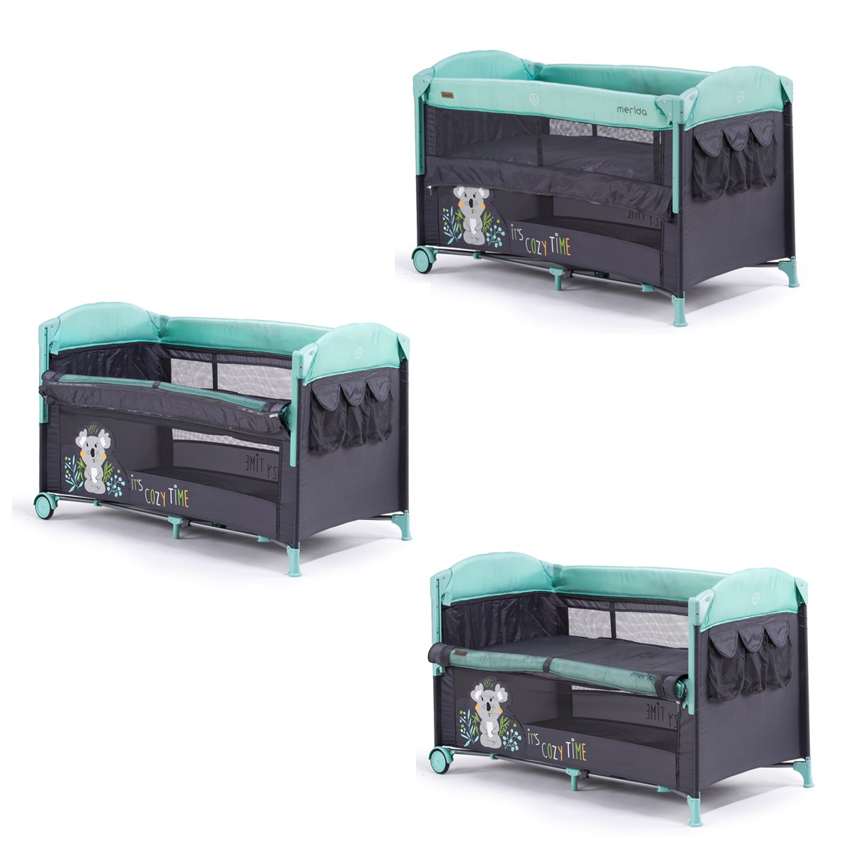 MERIDA LIT PARAPLUIE CODODO AVEC BARRIERE ET MATELAS RÉGLABLE. Dès la naissance jusqu'à 15 kg. CARACTÉRISTIQUES ET AVANTAGES : Ce lit parapluie cododo est idéal pour les nouveau-nés et les enfants jusqu'à 15 kg. Il présente l'avantage d'offrir 2 hauteurs de couchage réglables. Une position cododo plus haute (pour les nourrissons) et une seconde position plus basse au fond du lit (pour les enfants plus grands). Vous pourrez ainsi régler la hauteur du matelas à votre convenance. De plus, ce lit parapluie/cododo dispose sur un côté d'une barrière réglable en hauteur. Elle permet de faciliter l'accès et les mouvements, notamment lorsque vous manipuler l'enfant. Ce lit parapluie est doté de 2 roulettes pour déplacer le lit et d'un un frein de sécurité. 6 poches latérales (3 de chaque côté) permettent de ranger des accessoires pour la nuit. Ce lit parapluie dispose de clips de sécurité. Il se plie et se déplie rapidement. Une fois le matelas enroulé autour du lit plié, il se range dans son sac de transport inclus. Conforme à la norme de sécurité Européenne EN716. Garantie : 2 ans. L'ENSEMBLE CONTIENT : 1 lit parapluie cododo 1 matelas 1 sac de rangement DIMENSIONS ET POIDS : Dimensions lit ouvert : L 125 cm x l 64 cm x H 74 cm. Dimensions du lit plié : L 80 cm x l 24 cm x H 24 cm. Dimensions du matelas : L 118 cm x l 61 cm x H 1 cm. Poids lit + matelas : 10,45 kg. A NOTER : pas de livraison en Corse ou sur les îles.