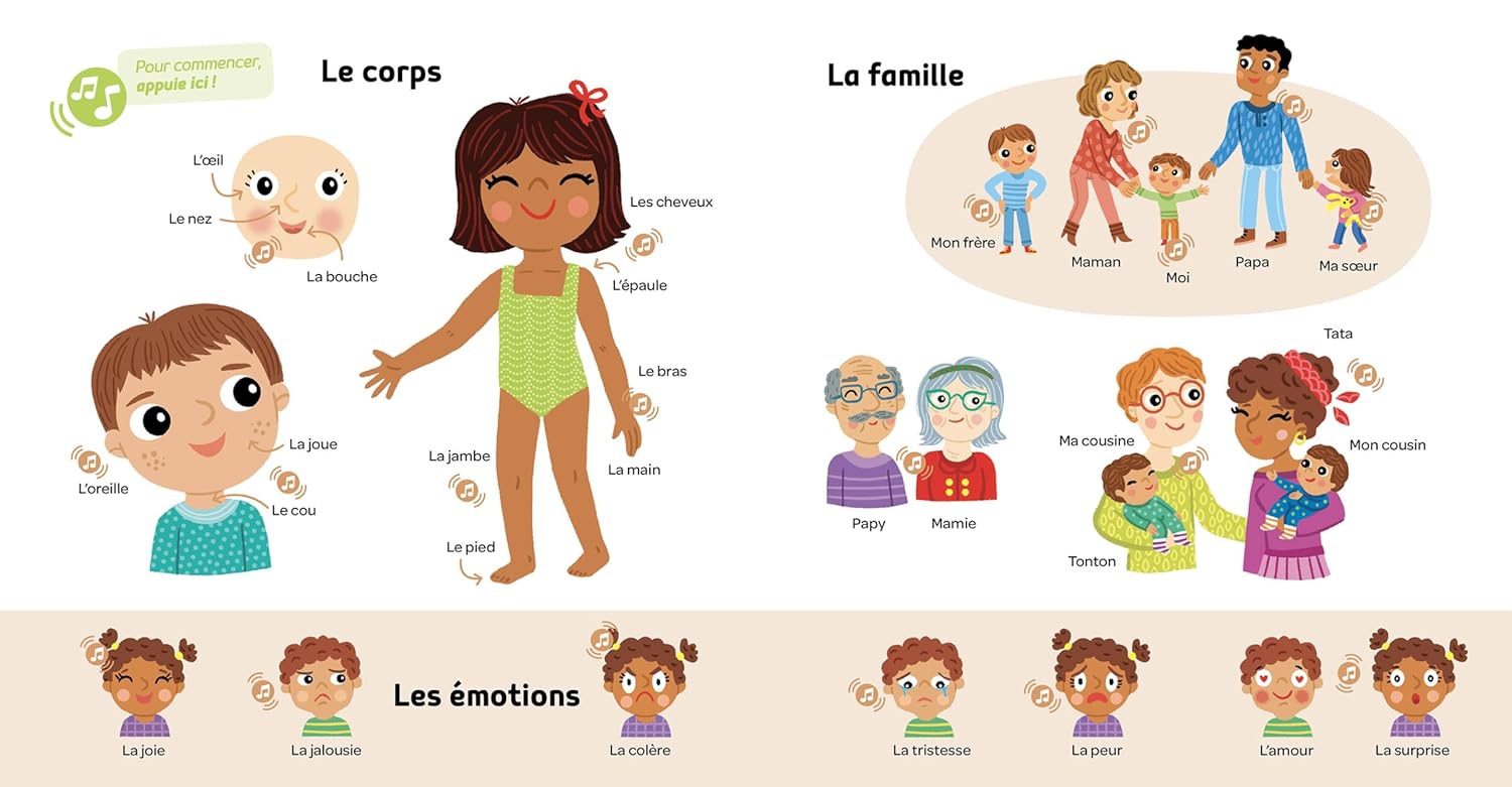 Un livre conçu spécialement pour permettre à l'enfant de découvrir ses premiers mots de façon ludique, avec 500 mots lus et 50 bruits !