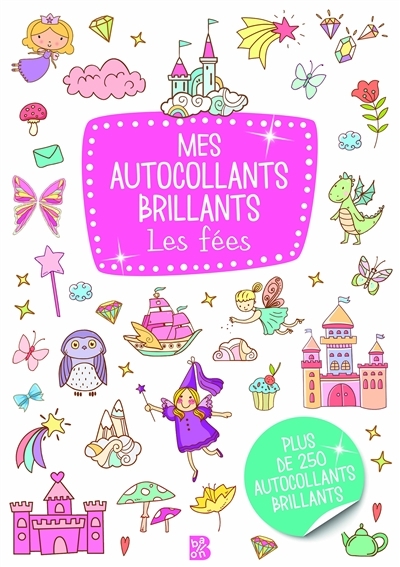Dans ce livre, tu trouveras plus de 250 autocollants féeriques recouverts de paillettes.