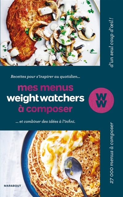 Un livre ultra pratique et original divisé en 3 volets pour composer des menus selon vos envies, les occasions et les contraintes du quotidien ! Des recettes gourmandes et rapides à associer pour 27 000 possibilités de menus de l'entrée au dessert, comme par exemple : Entrée Potiron en cappuccino de chèvre Plat Escalope de veau à la parisienne Dessert Crumble de poire pain d'épices Choisissez vos repas en créant votre propre page de recettes à l'aide des volets. Et voilà votre menu Weight Watchers ! Pour vous aider dans votre choix, repérez le petit picto qui vous convient : . À emporter . Rapide . Végétarienne Feuilletez, choisissez et composez près de 27 000 menus !