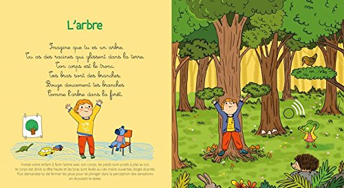 Stéphanie Couturier, psychomotricienne et sophrologue, nous invite à un petit moment de médiation. Sur chaque page, la puce sonore déclenche une voix, qui propose aux petits d'imaginer qu'ils sont un arbre, qu'un papillon les effleure, que le soleil les réchauffe, que le vent caresse leurs joues, qu'ils écoutent le bruit de la mer, ou encore qu'une petite plume les frôle.