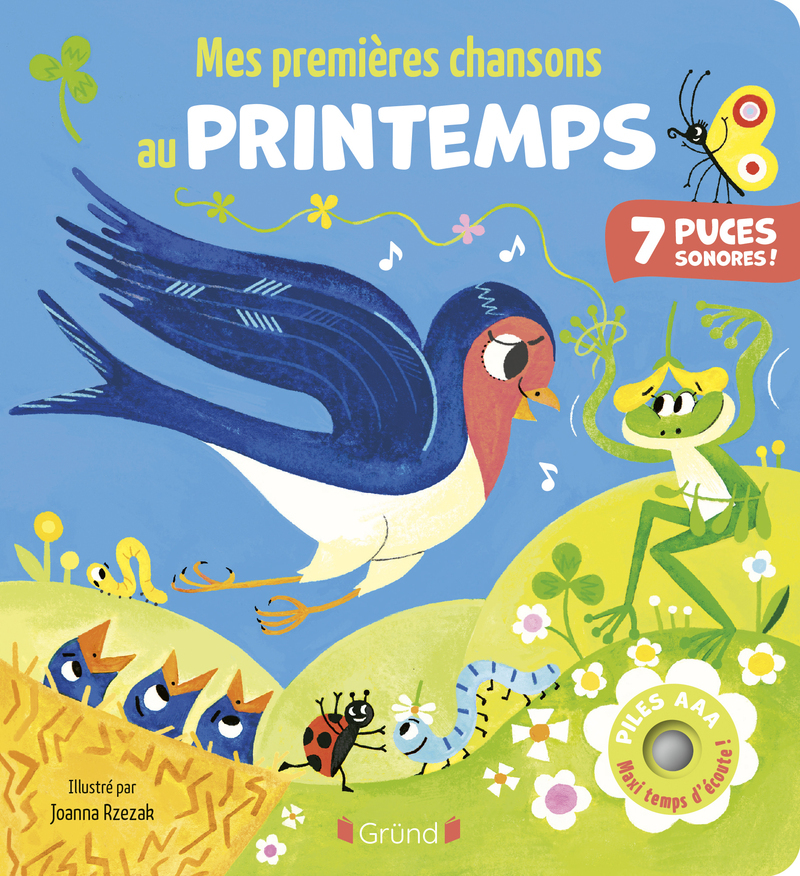 C'est le printemps ! Découvre au fil des pages de cet ouvrage sonore 7 chansons incontournables pour célébrer cette saison : " C'est le printemps " d'Henri Dès ; " Petit ver de terre " ; " Dans ce jardin " ; " Pipi sur le gazon " ; " Mars arrive " ; " Y'a un coucou " ; " Itsy bitsy spider ".