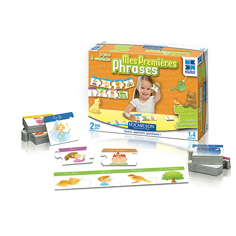 Un jeu pour développer observation, imagination et langage. Dès 2 ans, l’enfant accroche des images pour faire une phrase comme on fait un puzzle. Dès 4/5 ans, en associant différentes couleurs, il construit des phrases tout seul! Contenu : 48 pièces à assembler. Dès 2 ans
