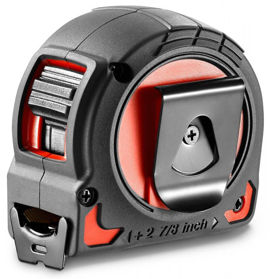 METRE A RUBAN 5 M X 28 MM Nouveau design boitier grip anti-dérapant pour une prise en main confortable Ruban mat anti-reflet revêtement Mylar et Width Agrafe de ceinture en acier inoxydable