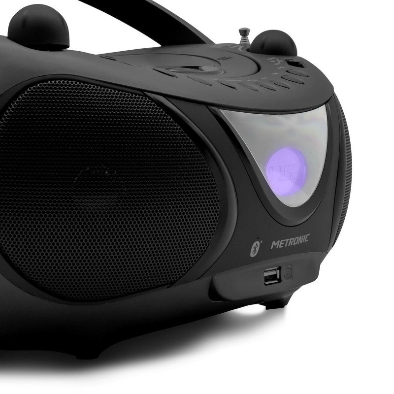 METRONIC 477135 Radio mp3 Bluetooth - Musique favorite préenregistrée au format MP3 - Lecteur CD et clé USB - Mode veille - Affichage de l'heure - Ecran LCD rétro-éclairé - Support CD (CD, CD-R/RW, MP3) - Noir