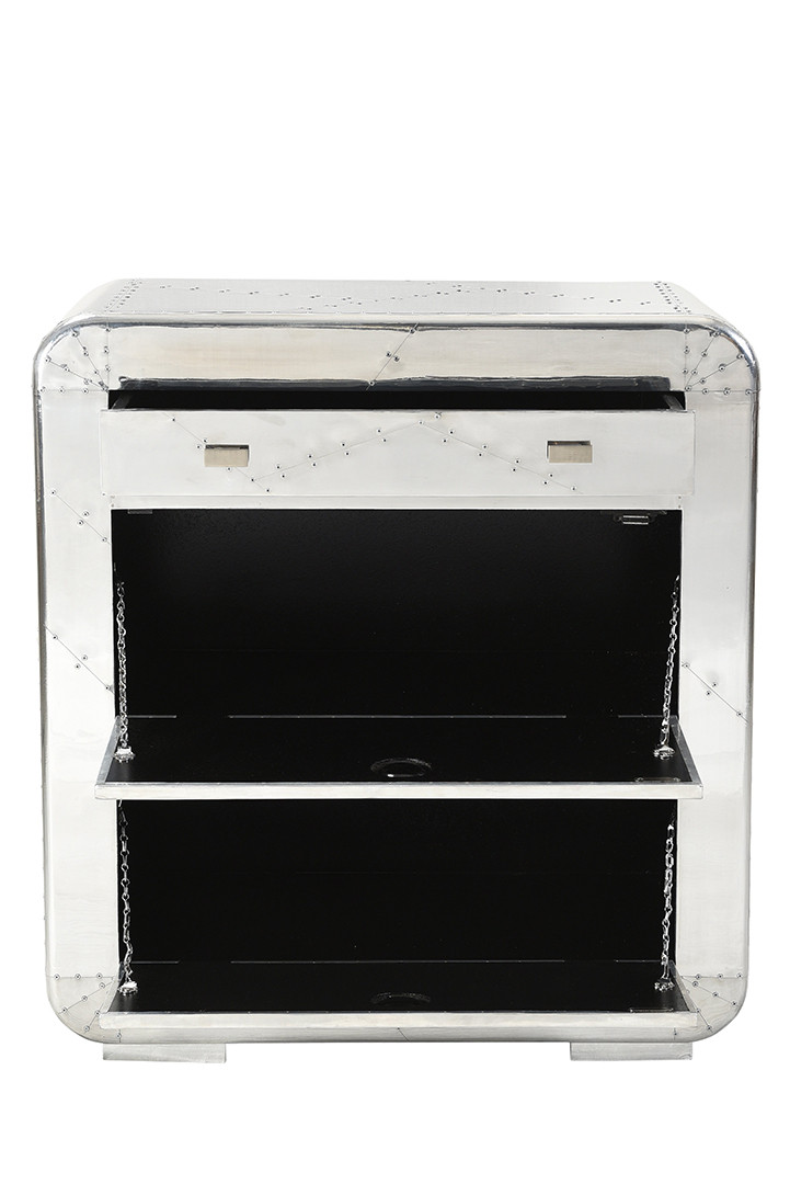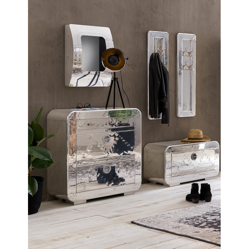 Laissez-vous séduire par notre meuble à chaussures industriel H 90 cm bois et aluminium Fly - Grande sélection de meubles à chaussures - Entreprise française