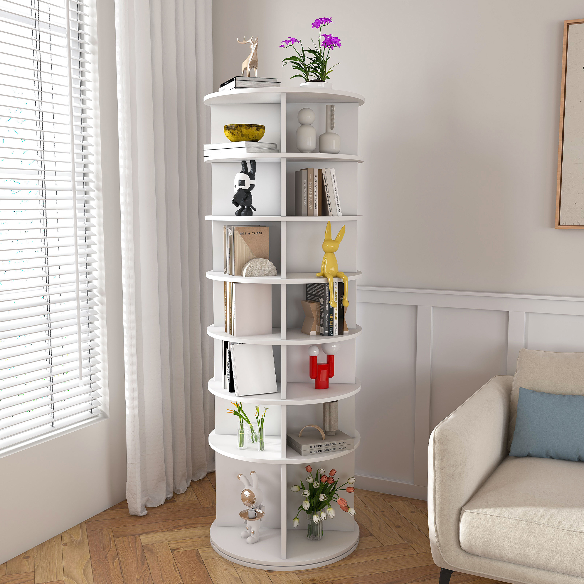 Ce range-chaussures rotatif à 7 niveaux offre un espace de rangement pour jusqu'à 28 paires de chaussures, sacs ou accessoires. Idéal pour les petits espaces, il permet d'organiser vos chaussures avec soin sans encombrer votre sol.