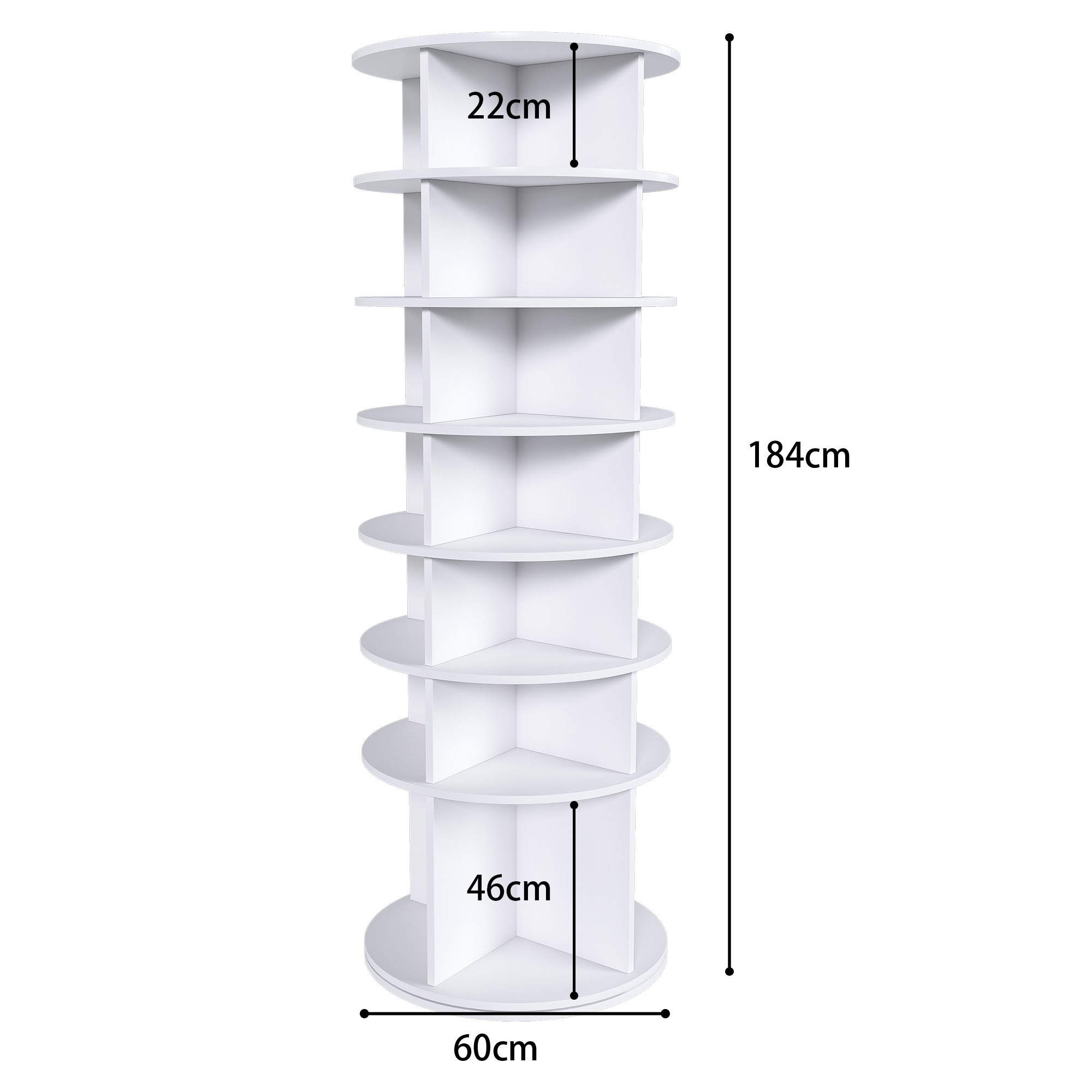Meuble à chaussures jusqu'à 28 paires, pivotante 7 niveaux 60×60×184 cm, blanc