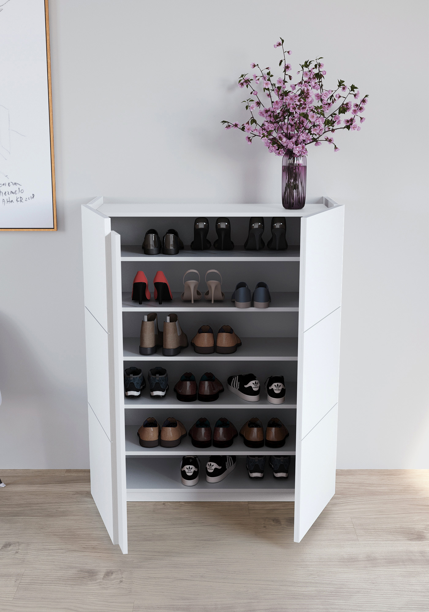 Meuble à chaussures, modèle HESSA, avec deux portes, Herdasa. Blanc