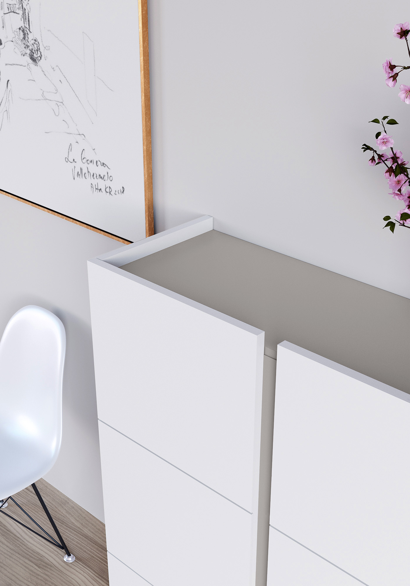 Meuble à chaussures en mélamine dans un style scandinave. Les deux portes sont légèrement plus hautes pour faciliter l’ouverture. Son design simple et multifonctionnel permmet de l'utiliser aussi comme meuble de rangement à l'entrée, la chambre, le vestiaire, la salle de jeux, etc.