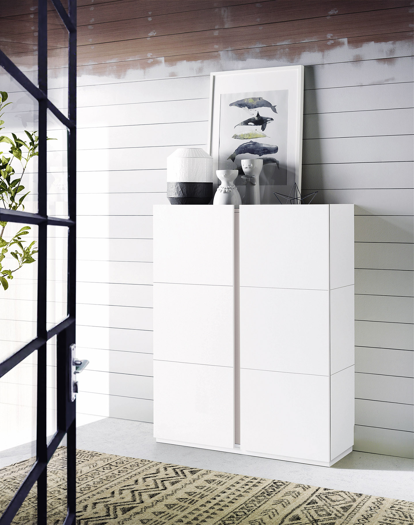 Meuble à chaussures, modèle HESSA, avec deux portes, Herdasa. Blanc-Taupe